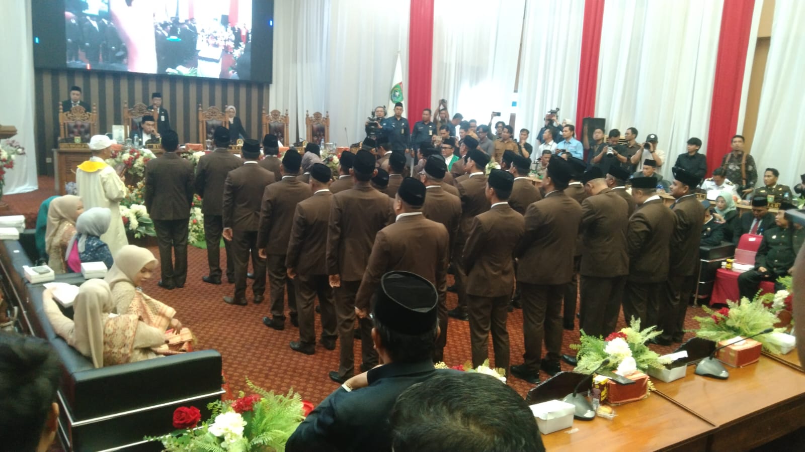 Suksesi Nasional, TANAH BUMBU –Sebanyak 35 anggota Dewan Perwakilan Rakyat Daerah (DPRD) Kabupaten Tanah Bumbu periode 2024-2029 resmi diambil sumpah dan janjinya dalam sebuah upacara yang berlangsung khidmat di Ruang Rapat DPRD Tanah Bumbu, Senin (26/08/2024).