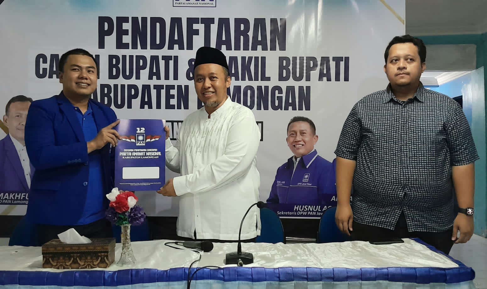 “Untuk itu saya merasa terpanggil untuk maju dalam Pilkada Lamongan 2024. Makanya saya disini mendaftar di PAN untuk mendapatkan rekomnya. Selain di PAN, kami juga sudah komunikasi dengan berbagai partai, dan saya juga akan ikut mendaftar bilamana ada partai yang membuka pendaftaran termasuk Partai Demokrat, ” kata pria yang juga Ketua IPSI Lamongan.