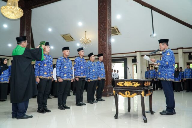 “Saat ini Pemerintah Kabupaten Lamongan sedang melaksanakan reformasi birokrasi, yangmana seluruh kegiatan dan keputusan yang dibuat mampu memberikan dampak nyata bagi masyarakat. Untuk mewujudkan hal tersebut, ASN harus menjadi motor penggerak realisasinya dengan profesionalisme yang dimiliki,” tutur Bupati Lamongan Yuhronur Efendi saat melakukan pelantikan dan pengambilan sumpah janji 91 Pegawai Negeri Sipil (PNS) dalam jabatan fungsional dan menyerahkan surat keputusan ke 231 Pegawai Pemerintah dengan Perjanjian Kerja (PPK) paruh waktu di lingkungan Pemerintah Kabupaten Lamongan, Senin (1/12/2025) di Pendopo Lokatantra.