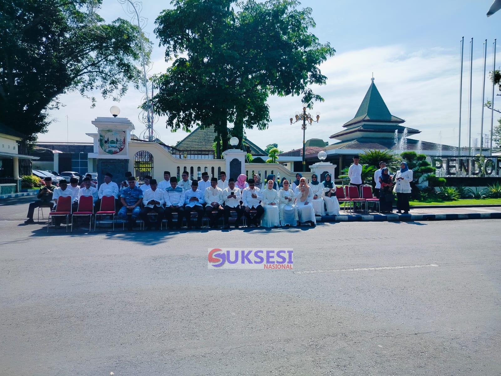 Rombongan Bupati Jombang saat menyambut pawai grebek apem di dalam terik matahari