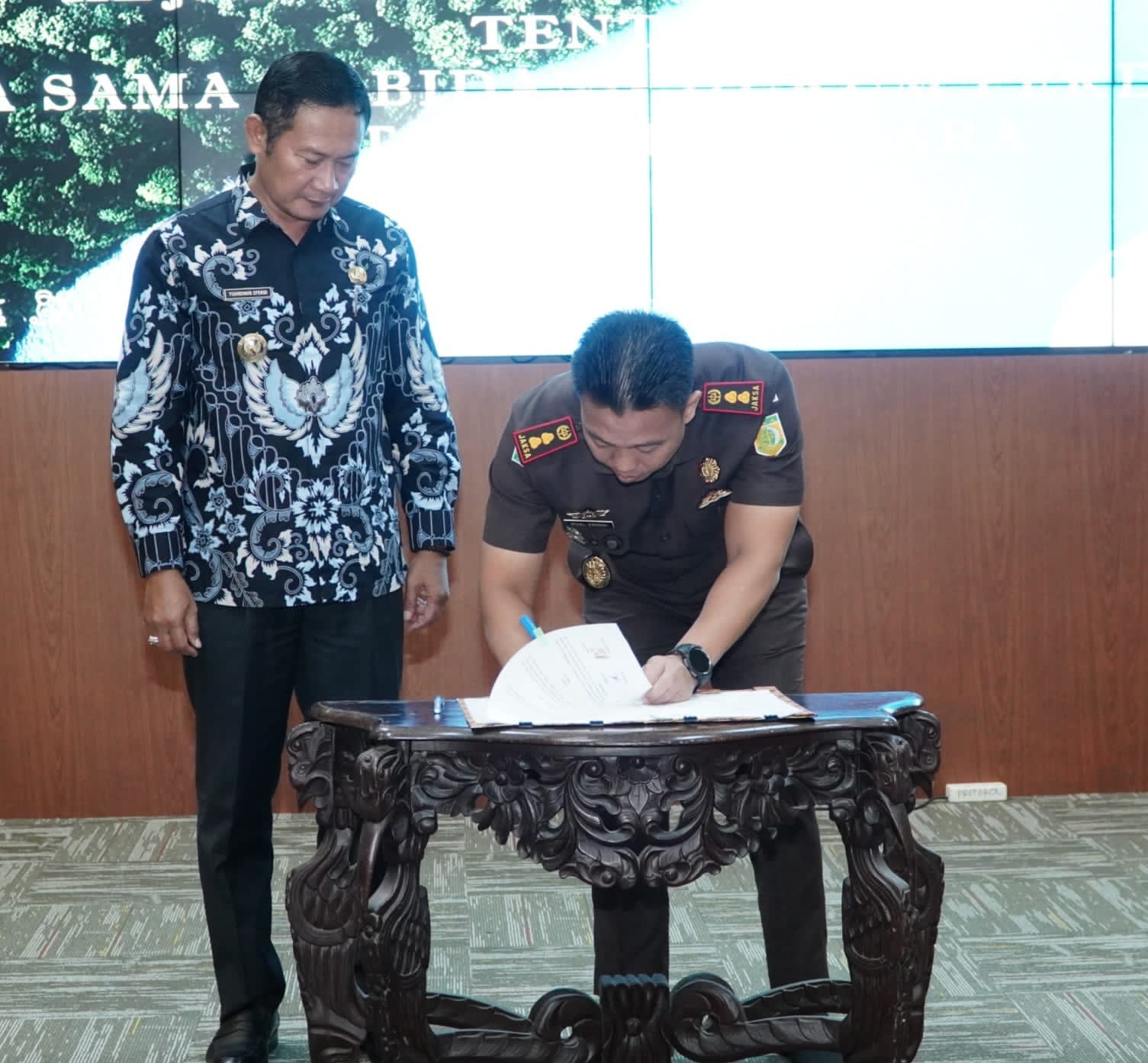 Suksesi Nasional, LAMONGAN – Bupati Lamongan Yuhronur Efendi menandatangani nota kesepahaman atau Memorandum of Understanding (MoU) dengan Kejaksaan Negeri Lamongan di bidang hukum perdata dan tata usaha negara (Datun), di Command Center Lt. 3 Pemkab Lamongan, Kamis (6/2/2025).