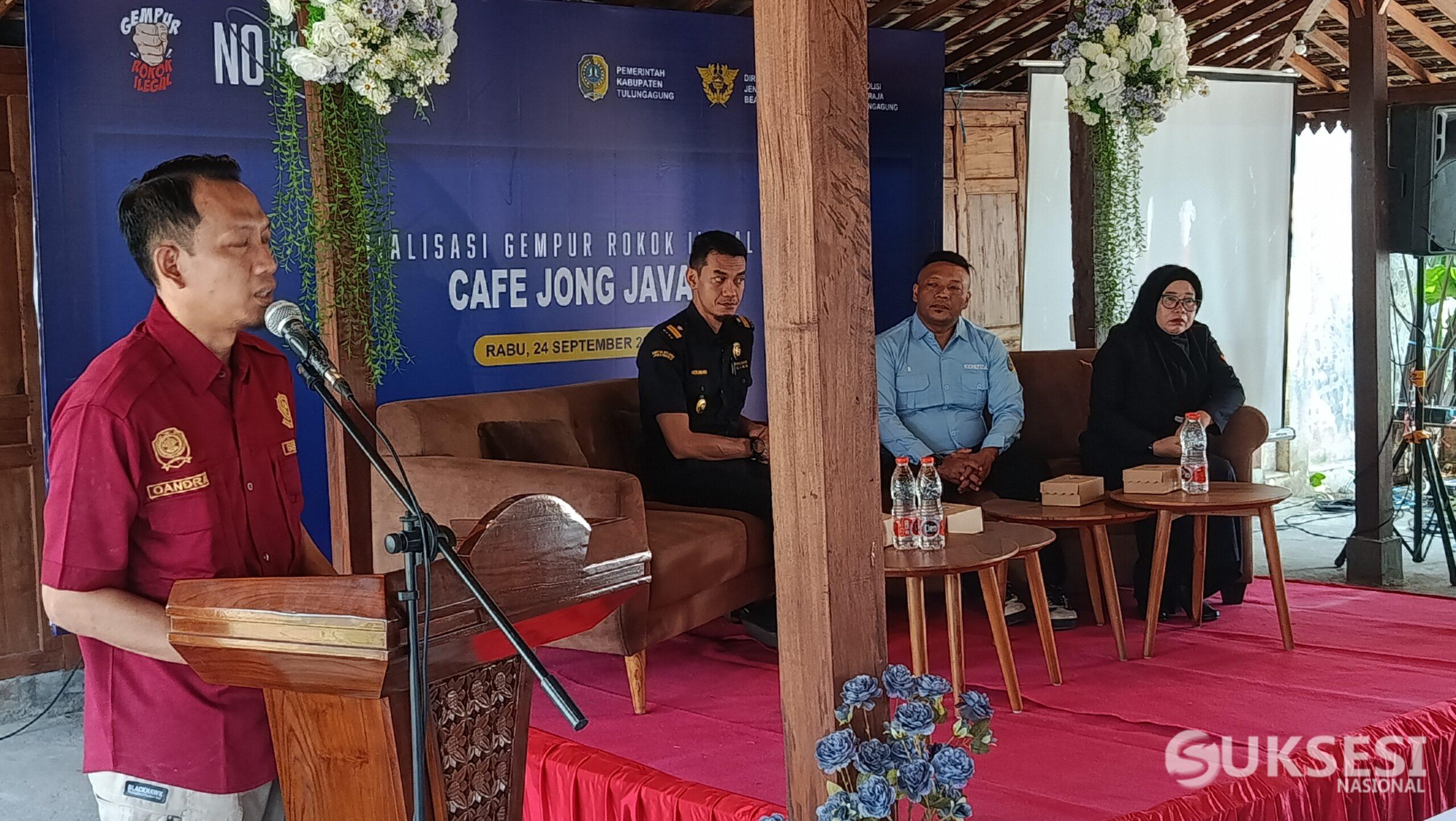 Suksesi Nasional.com Tulungagung – Satpol PP Tulungagung bersama Bea Cukai Blitar gelar sosialisasi Gempur Rokok Ilegal yang dilaksanakan di tempat makan dong java kelurahan kepatihan Rabo, (24/9/2025).