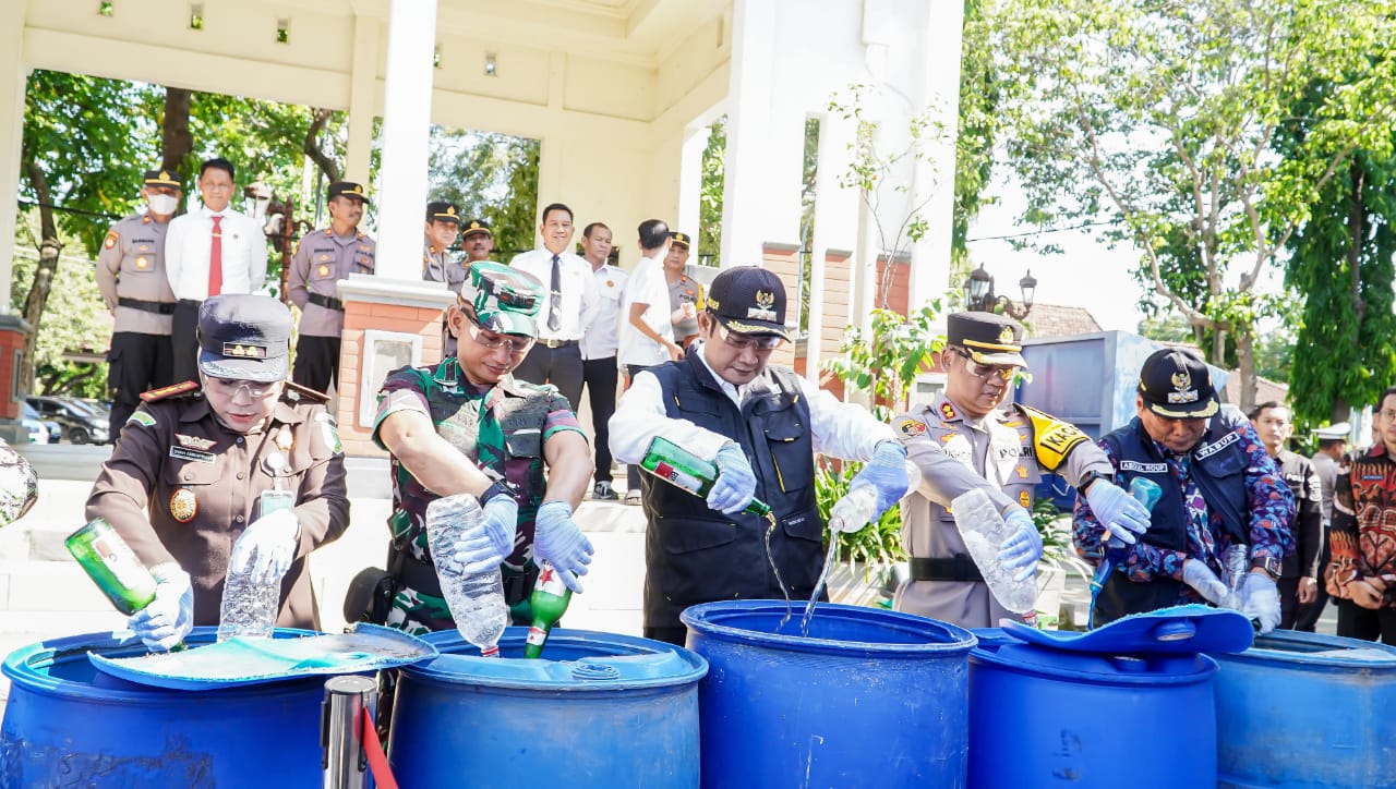 Bupati Lamongan Yuhronur Efendi bersama Kapolres Lamongan AKBP Yakhob Silvana Delareskha, Dandim 0812 Lamongan Letkol Arm Ketut Wira Purbawan, serta jajaran forkopimda Lamongan melakukan pemusnahan barang bukti cipta kondisi yang telah dilaksanakan Polres Lamongan selama 24 hari, guna menciptakan situasi kamtibmas yang aman dan lancar jelang natal 2023 dan tahun baru 2024.