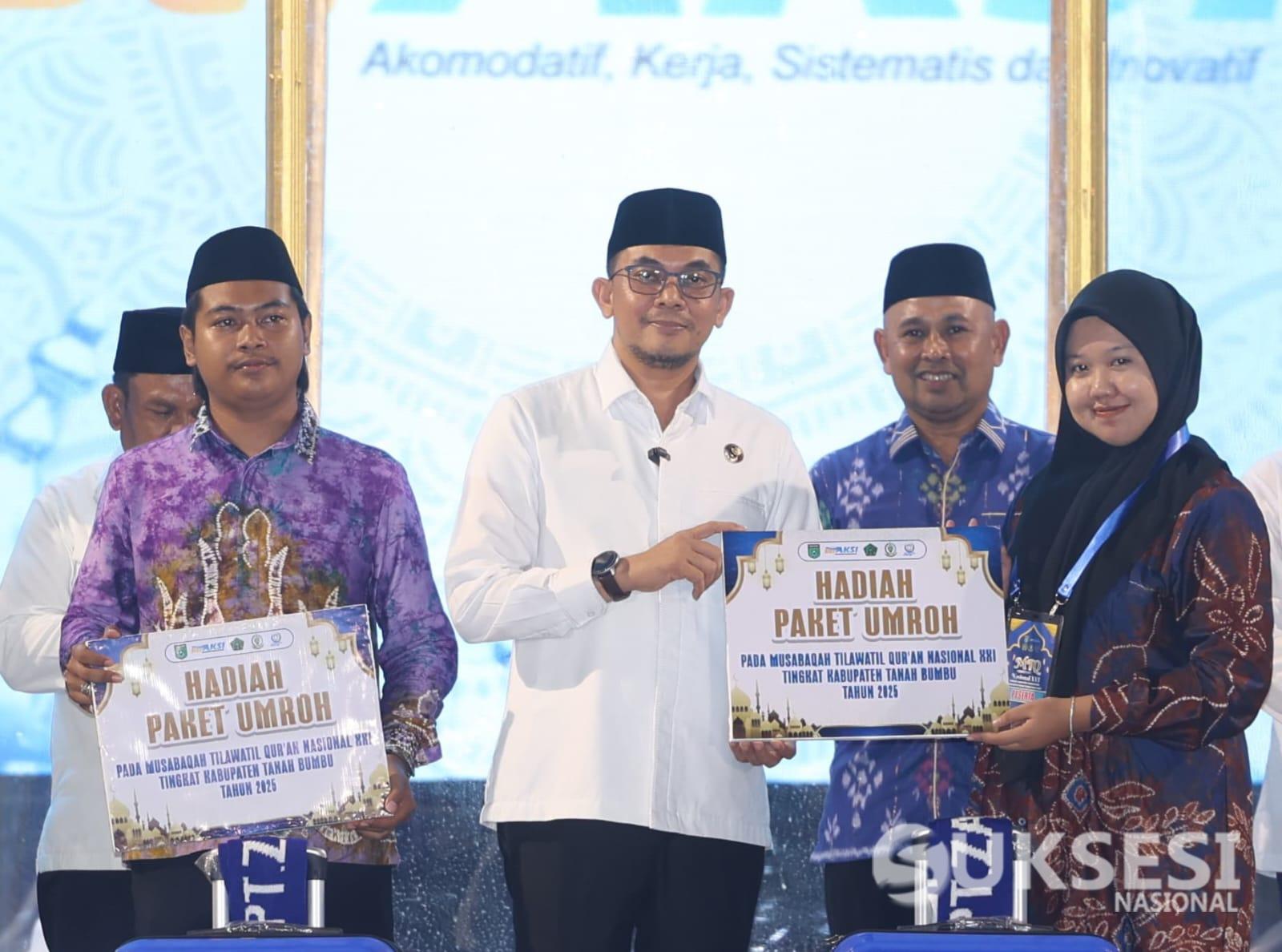 Suksesi Nasional.com Tanah bumbuBATULICIN – Bupati Andi Rudi Latif menutup secara resmi MTQN XXI Tahun 2025 Tingkat Kabupaten Tanah Bumbu di Kecamatan Kusan Tengah, Jumat (21/11/2025) malam. Suasana penutupan MTQN XXI kian semarak dengan disediakannya 10 paket umroh sebagai bentuk apresiasi bagi para peserta.