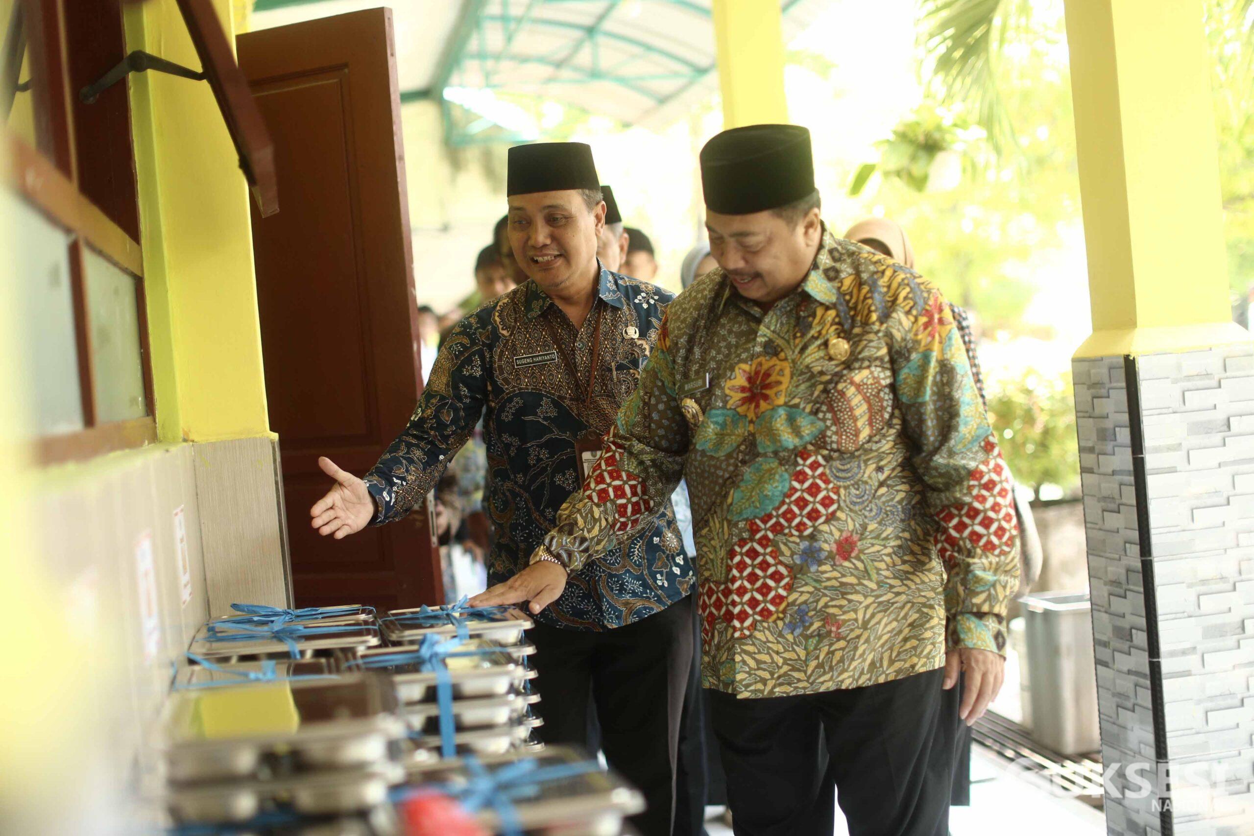 Tidak hanya fokus pada program gizi, Bupati juga meninjau kondisi sarana dan prasarana pendidikan, khususnya ruang kelas yang baru direhabilitasi. Ia masuk ke beberapa ruang belajar dan melihat langsung situasi belajar siswa.