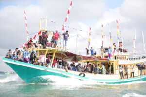 “di laut kami melaksanakan doa bersama dan acara makan bersama menyampaikan rasa syukur yang mendalam atas berkah yang di terima” ungkapnya.
