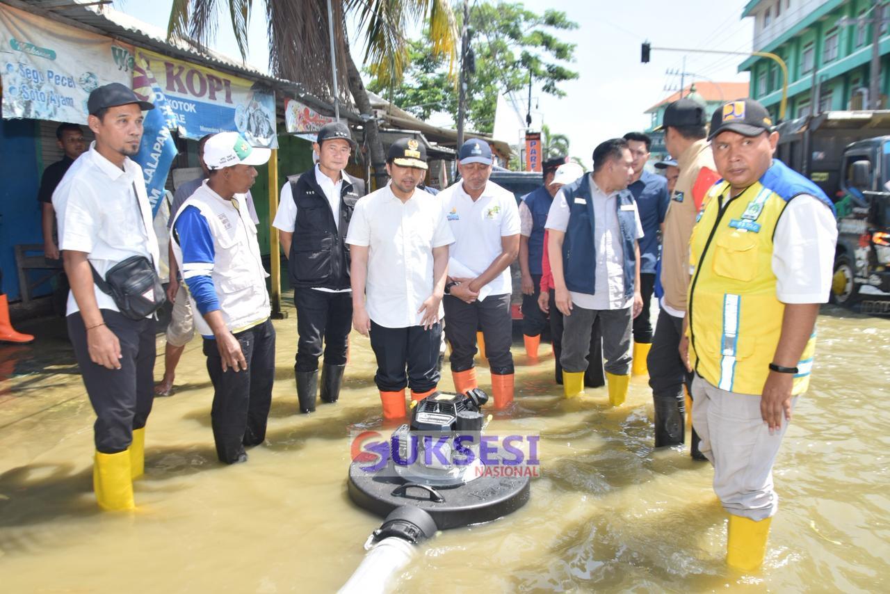 Sebagai langkah penanganan darurat, juga dipasang kantong penahan sepanjang sekitar 160 meter yang berfungsi sebagai tanggul sementara. Dengan upaya tersebut, air akan diarahkan untuk menggenang sementara di badan jalan dan kemudian dipompa menggunakan pompa apung agar segera surut.