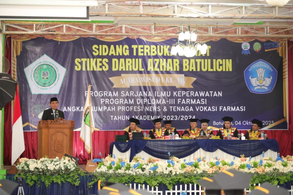 Wisuda ke-XIV Stikes Darul Azhar untuk program sarjana ilmu keperawatan, dan program Diploma III Farmasi, angkat sumpah profesi Ners dan tenaga vokasi farmasi tahun akademik 2023/2024.