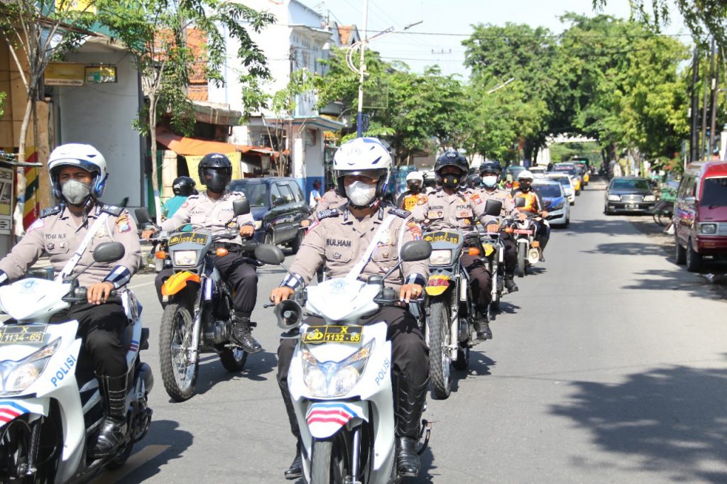 Suksesi Nasional, Sampang – Kepolisian Resort (Polres) Sampang bersama Forkopimda melaksanakan apel pasukan Patroli Motor penegakan protokol kesehatan di masyarakat (pamor keris). Hal ini dilakukan pasca meningkatnya kasus positif varian omicron di Indenesia.