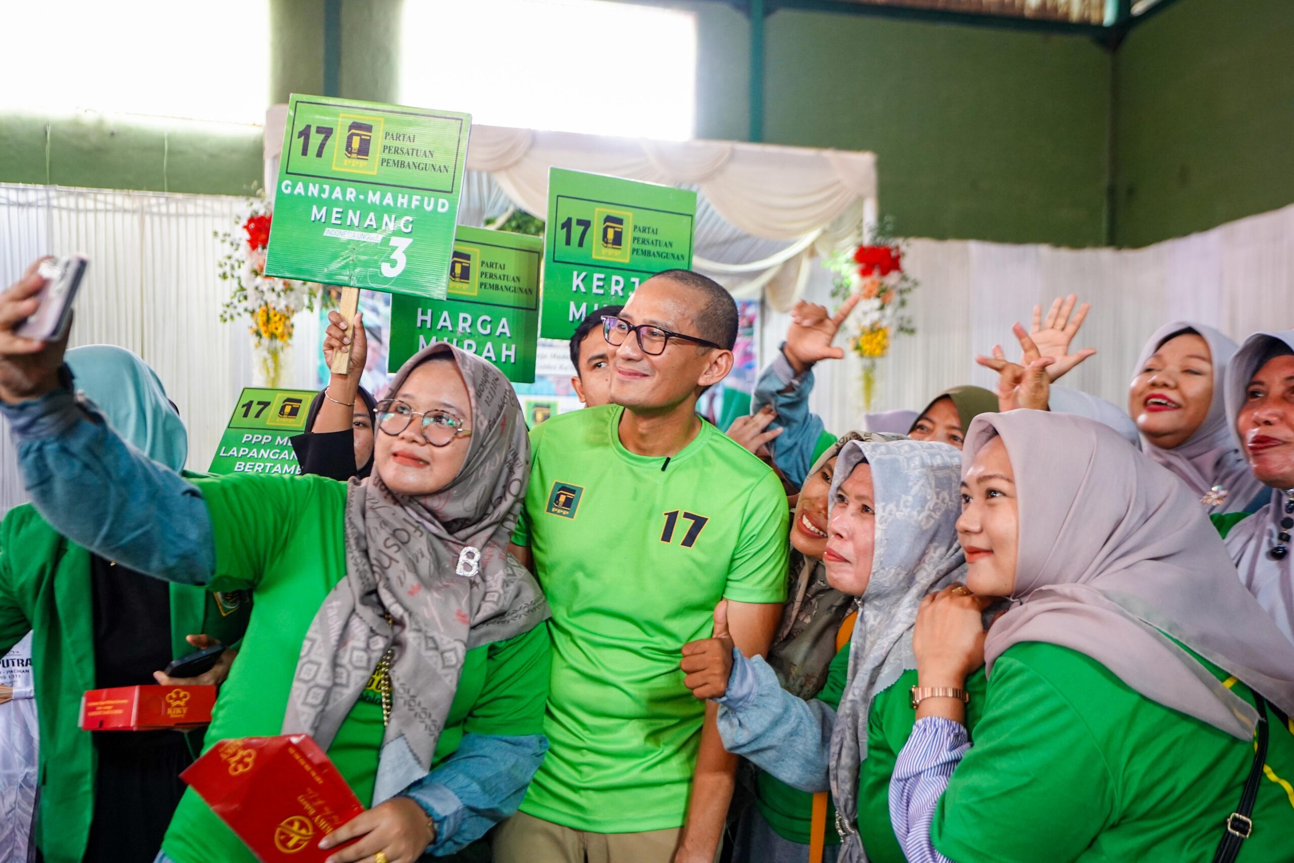 Dalam kesempatan tersebut, Ketua Badan Pemenangan Pemilu (Bappilu) Partai Persatuan Pembangunan (PPP) Sandiaga Salahuddin Uno bertemu dengan para ibu.