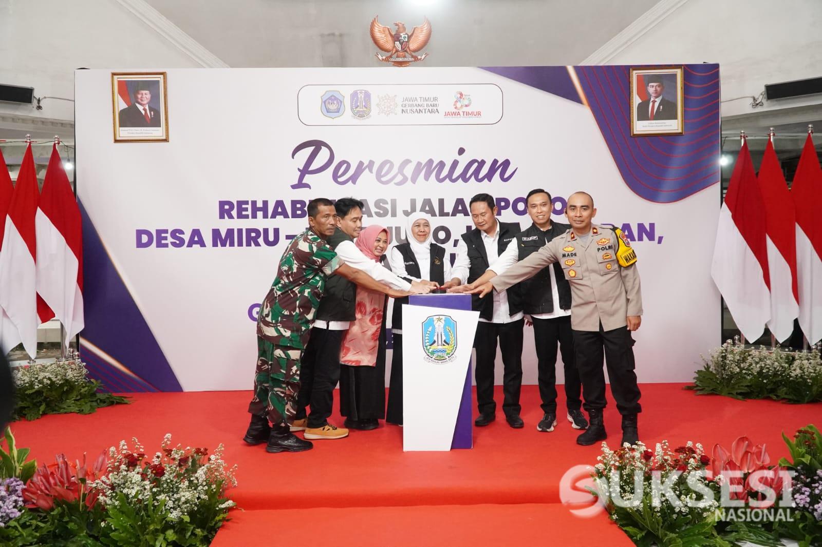 Suksesi Nasional. Com Lamongan-Rehabilitasi ruas Miru-Jugo Kecamatan Sekaran telah rampung. Ruas sepanjang 3.235 Km menggunakan aspal dua lapisan ini telah diresmikan oleh Gubernur Jawa Timur Khofifah Indar Parawansa didampingi Bupati Lamongan Yuhronur Efendi, Minggu (26/10) di Desa Miru sore ini.