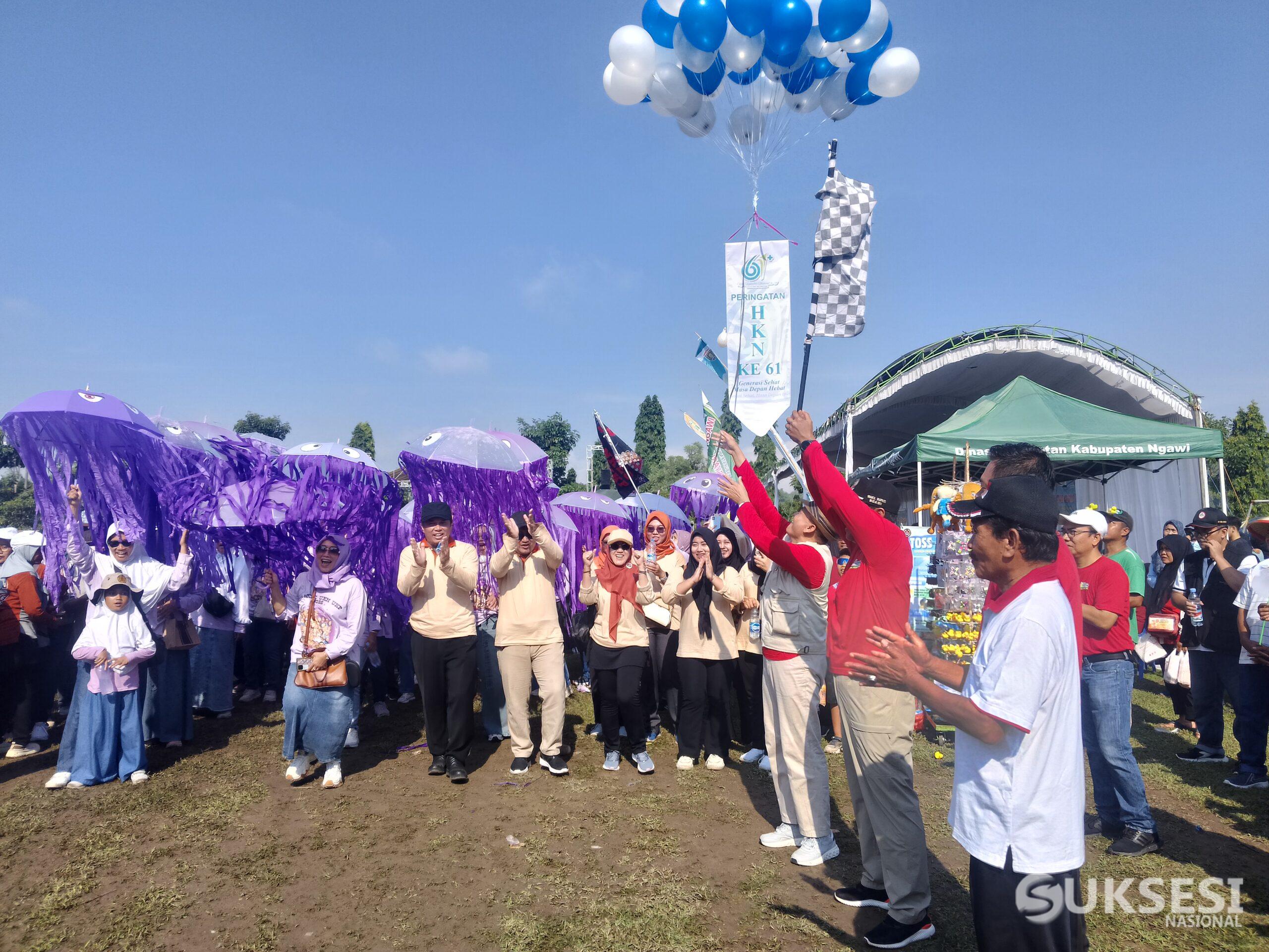Suksesi Nasional.com Ngawi – Dalam rangka menyongsong Hari Kesehatan Nasional (HKN) ke-61, Pemerintah Kabupaten Ngawi menggelar kegiatan jalan santai pada Sabtu (8/11/2025) pukul 06.00 WIT hingga selesai ,Kegiatan dimulai start dan finis di lapangang Desa Dero ,Kecamatan Beringin Kegiatan ini diikuti oleh Bupati dan Wakil Bupati Ngawi, Kepala dinas Kesehatan Ngawi , Organisasi Perangkat Daerah (OPD), serta ratusan pelajar SMP dan SMA se-Kecamatan Beringin
