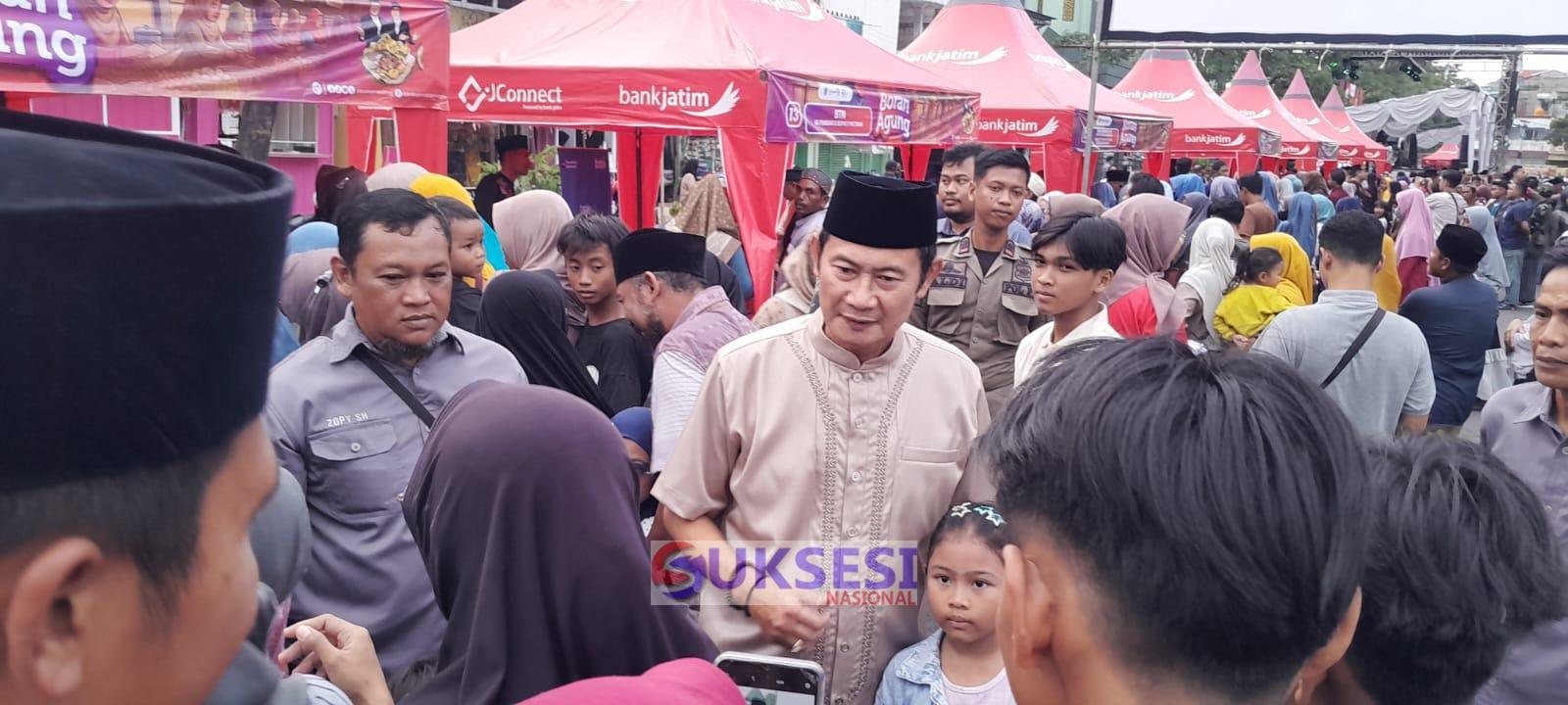 Lamongan, Suksesi Nasional.com – Pemerintah Kabupaten Lamongan menggelar tasyakuran setelah nasi boran resmi ditetapkan sebagai Warisan Budaya Tak Benda oleh Kementerian Kebudayaan Republik Indonesia di halaman Masjid Agung Lamongan, Minggu 15 Maret 2026. Perayaan tersebut diwujudkan melalui kegiatan Boran Agung dengan membagikan 1.447 porsi nasi boran secara gratis kepada masyarakat untuk berbuka puasa.