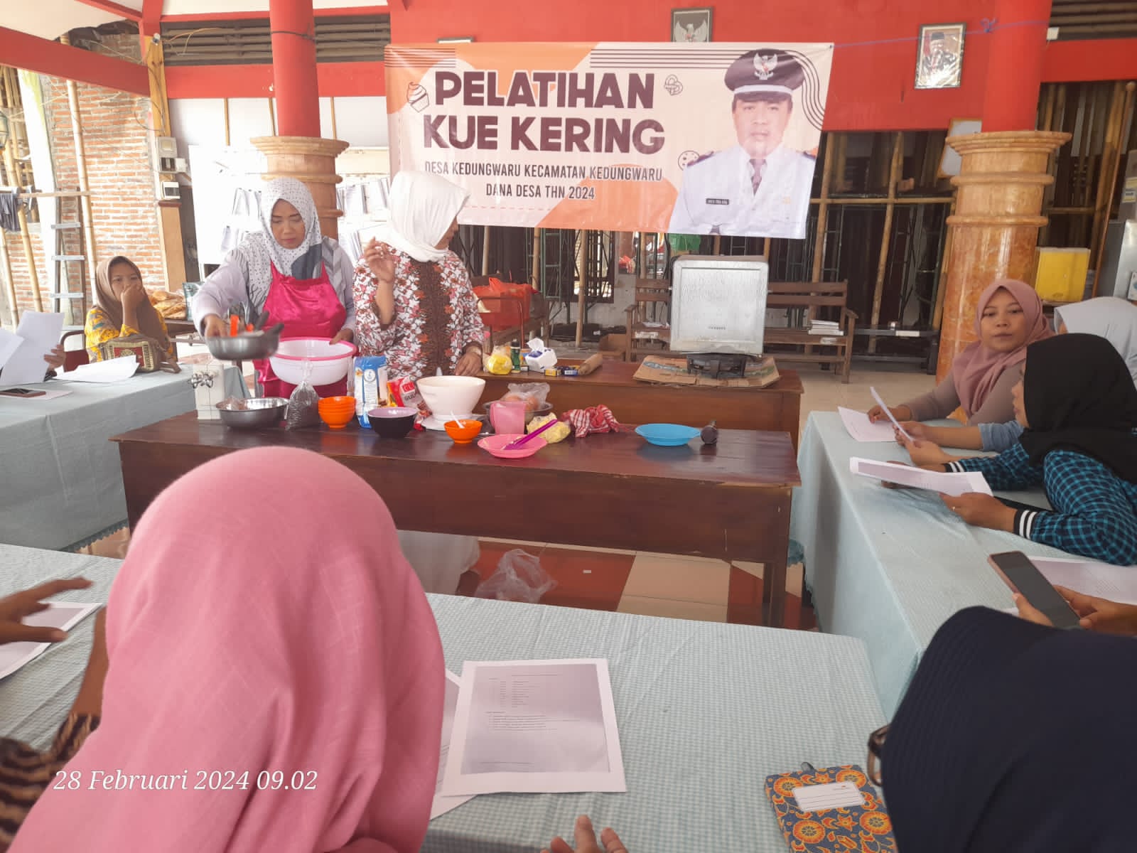 Moh. Toha, S.Ag Kepala Desa Kedungwaru dalam sambutannya mengatakan bahwa kegiatan yang bersumber dari anggaran Dana Desa tahun 2024 ini memberikan pembekalan untuk meningkatkan kemampuan dan kualitas dalam membuat kue kering, sehingga bisa membuat peluang usaha baru yang berdaya saing tinggi untuk menambah penghasilan keluarga.