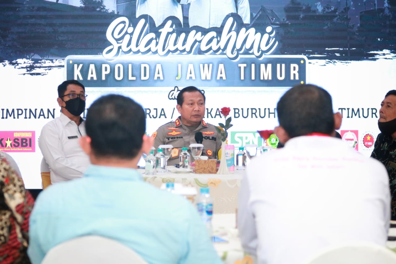 Perlunya dukungan, sinergitas dan kerjasama antara Polri, Serikat pekerja atau buruh serta pemerintahan untuk menjaga stabilitas perekonomian dan harkamtibmas di Jawa Timur yang kondusif.