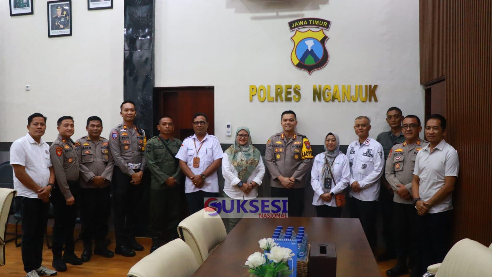Nganjuk Suksesinasional – Kapolres Nganjuk AKBP Suria Miftah Irawan, S.H., S.I.K., M.I.K., didampingi pejabat utama Polres Nganjuk melaksanakan silaturahmi dan audiensi dengan Administratur (ADM) Perhutani KPH Nganjuk, Dwi Puspitasari, di Ruang Kerja Kapolres Nganjuk, Kamis (11/2/2026).
