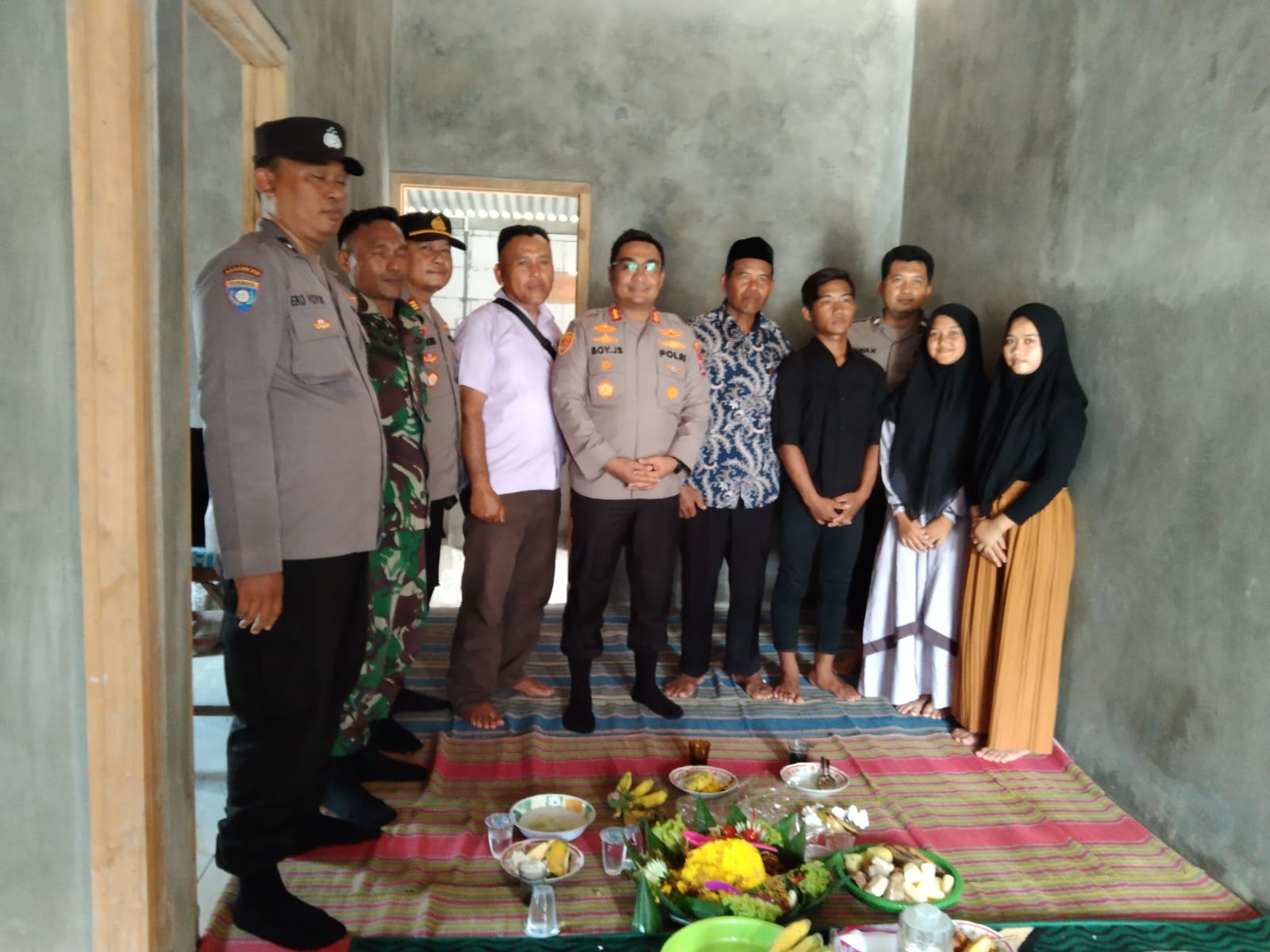 “Kedatangan kami dalam rangka membantu kegiatan tradisi selamatan masuk rumah baru buat Prengky dan keluarganya sekaligus menyerahkan sedikit sumbangan untuk keperluan sehari-hari mereka,”kata AKBP Boy, Kamis (10/11/2022).