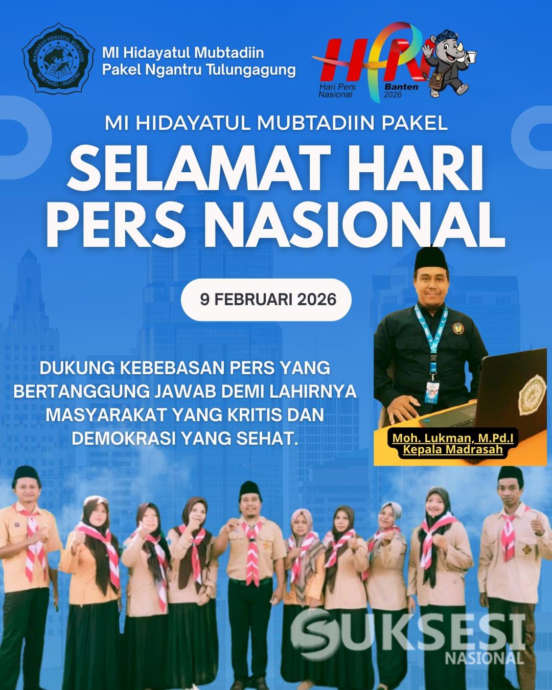 Keluarga Besar MI Hidayatul Mubtadin pakel mengucapkan selamat memperingati Hari. Pers Nasional