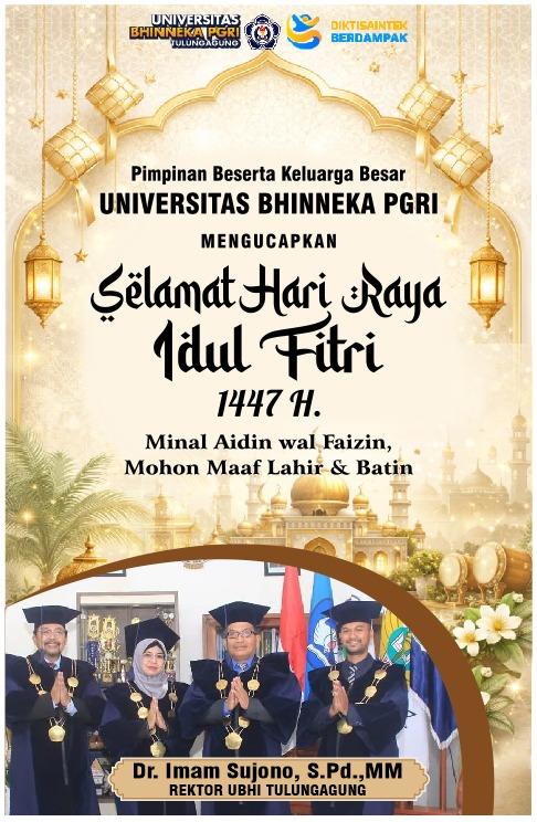 Beranda Daerah DaerahTulungagung Keluarga Besar Universitas Bhineka PGRI Mengucapkan selamat Hari raya Idul Fitri 1447 H Penulis Redaksi - Senin, 16 Maret 2026, 21:43 WIB