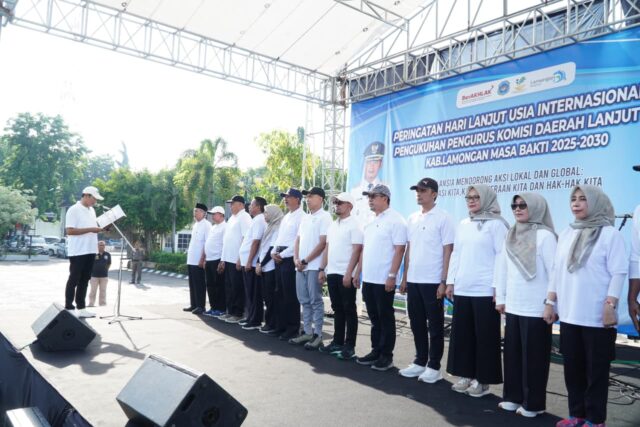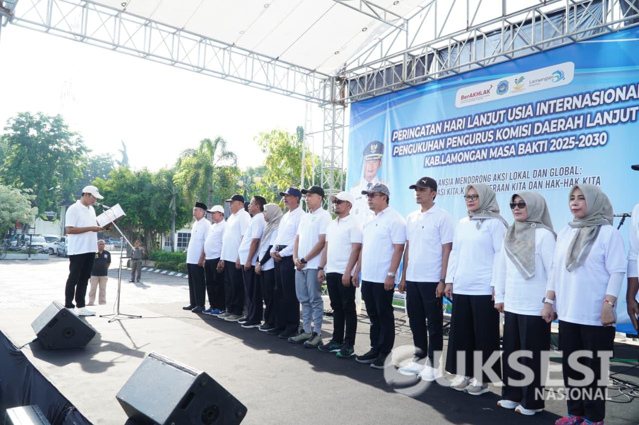 “Pemerintah Kabupaten Lamongan memberikan ruang luas untuk lansia agar terus berdaya. Capaian ragam program untuk berdayakan lansia di Lamongan dapat dilihat dari angka harapan hidup,” tutur Bupati Lamongan Yuhronur Efendi usai mengukuhkan Komisi Daerah Lansia (Komda Lansia) Kabupaten Lamongan periode 2025-2030, Jumat (12/12) di Alun-Alun Kabupaten Lamongan pagi ini.