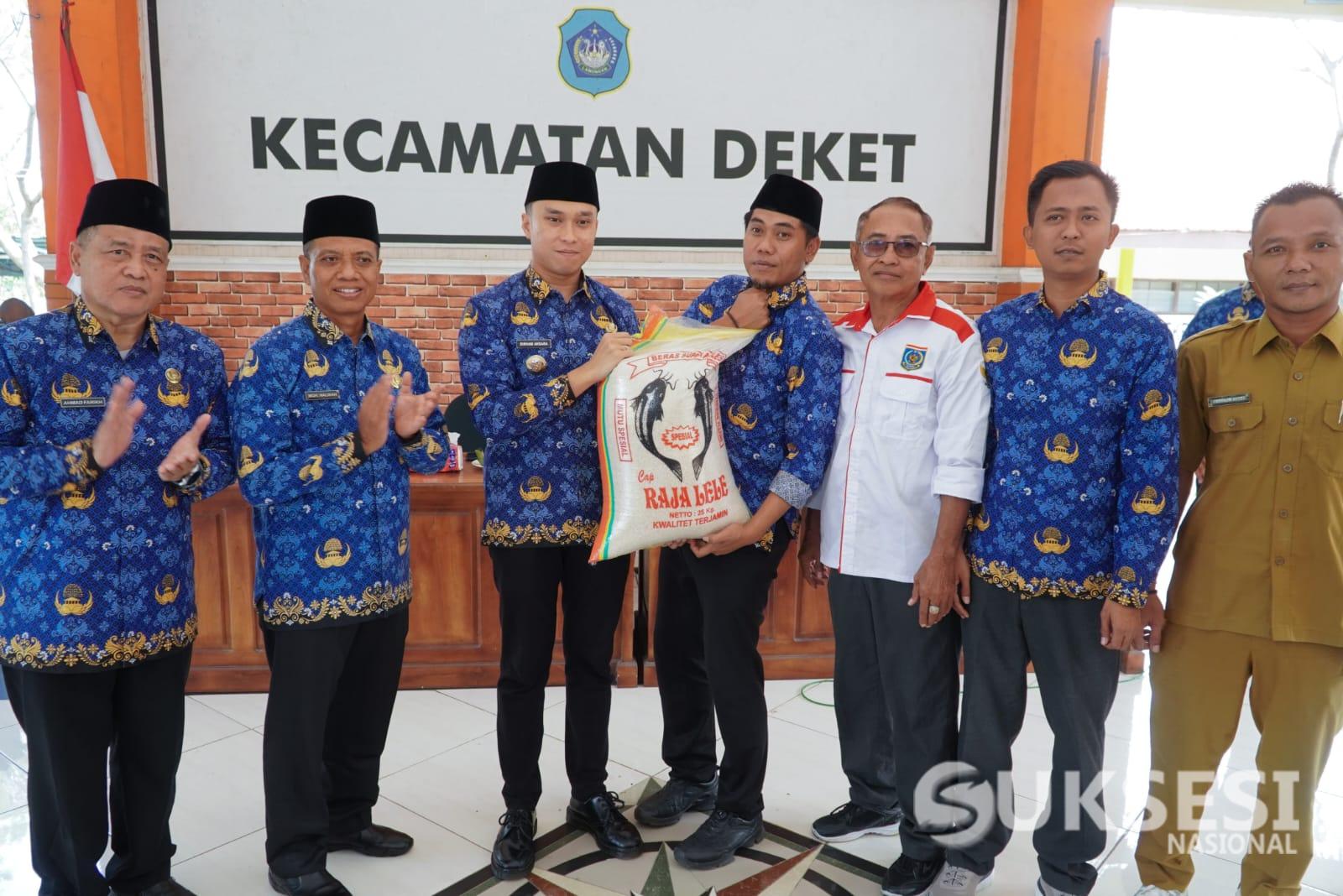 Suksesi Nasional, Lamongan-Sebanyak lima ton beras dari Korpri Kabupaten Lamongan disalurkan di wilayah Deket yang terdampak bencana hidrometeorologi, Senin (19/1) di Pendopo Kecamatan Deket.