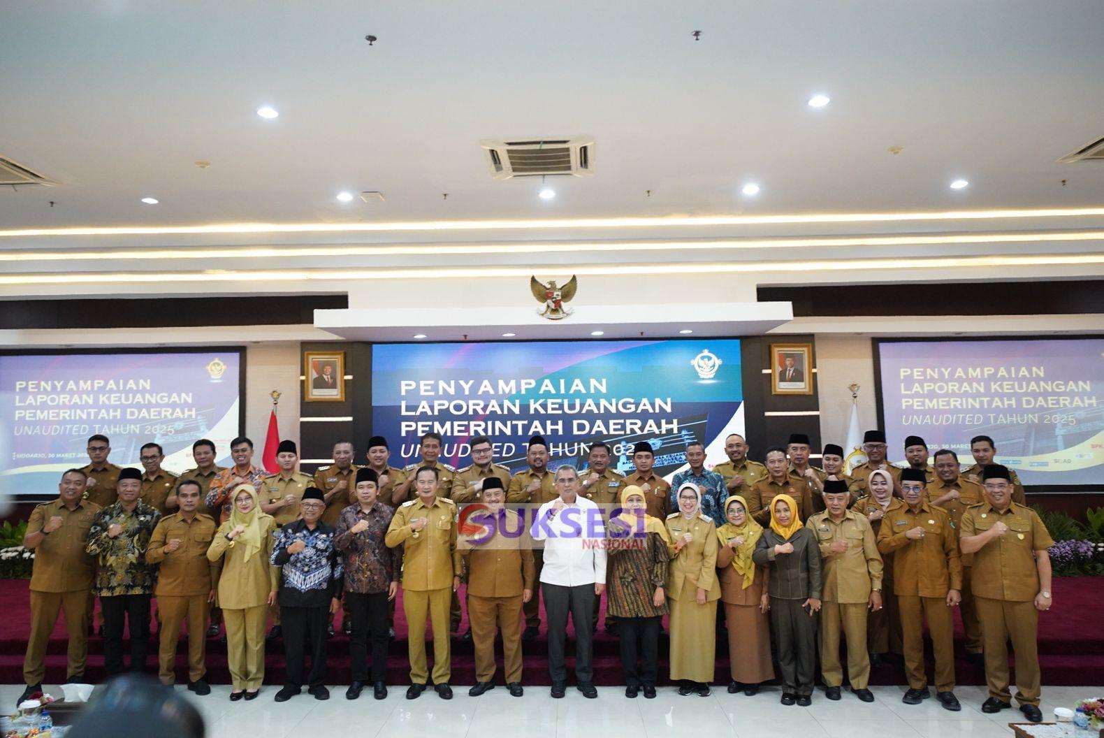 KEDIRI.Suksesi Nasional.com.Rabu,1-April-2026.Bupati Kediri Hanindhito Himawan Pramana menyerahkan Laporan Keuangan Pemerintah Daerah (LKPD) Kabupaten Kediri Unaudited Tahun Anggaran 2025 ke Kantor Badan Pemeriksa Keuangan (BPK) Perwakilan Jawa Timur, Senin (30/3).