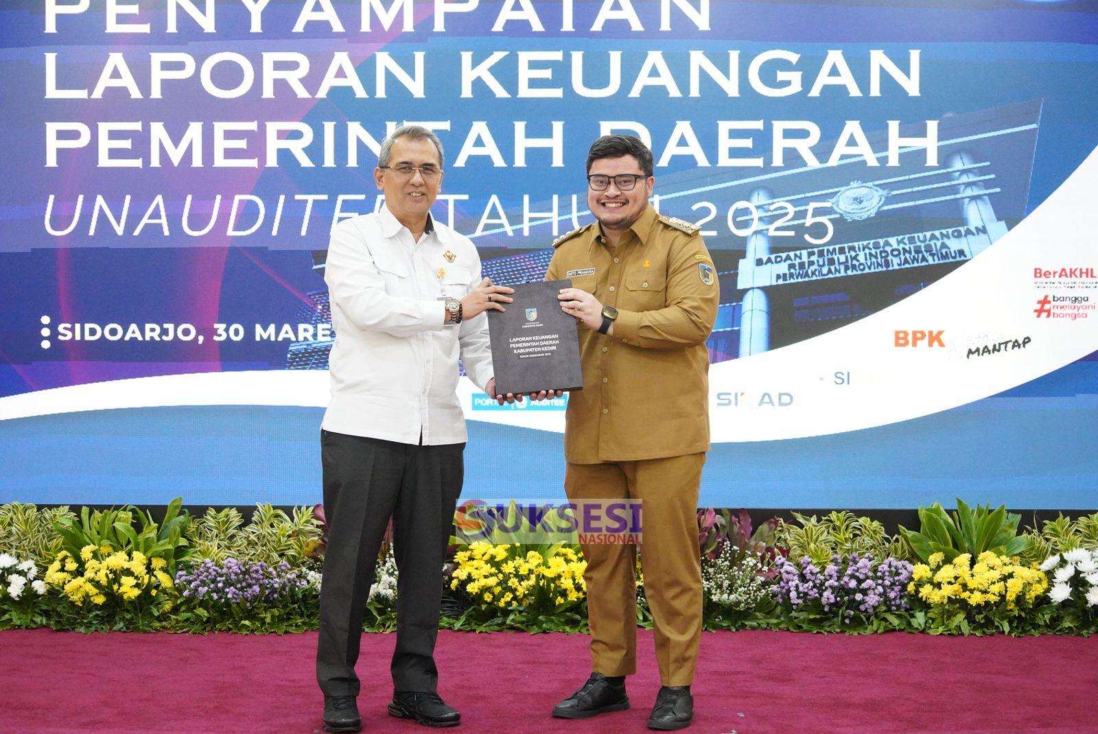 KEDIRI.Suksesi Nasional.com.Rabu,1-April-2026.Bupati Kediri Hanindhito Himawan Pramana menyerahkan Laporan Keuangan Pemerintah Daerah (LKPD) Kabupaten Kediri Unaudited Tahun Anggaran 2025 ke Kantor Badan Pemeriksa Keuangan (BPK) Perwakilan Jawa Timur, Senin (30/3).