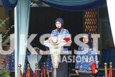 Suksesi Nasional, Kediri – Wali Kota Kediri Vinanda Prameswati bertindak sebagai Inspektur Upacara dalam Upacara Peringatan HUT KORPRI ke-54 dan Hari Guru Nasional ke-80. Acara berlangsung di Halaman Balai Kota Kediri, (01/12/2025). Upacara diikuti oleh ASN di lingkungan Pemerintah Kota Kediri.