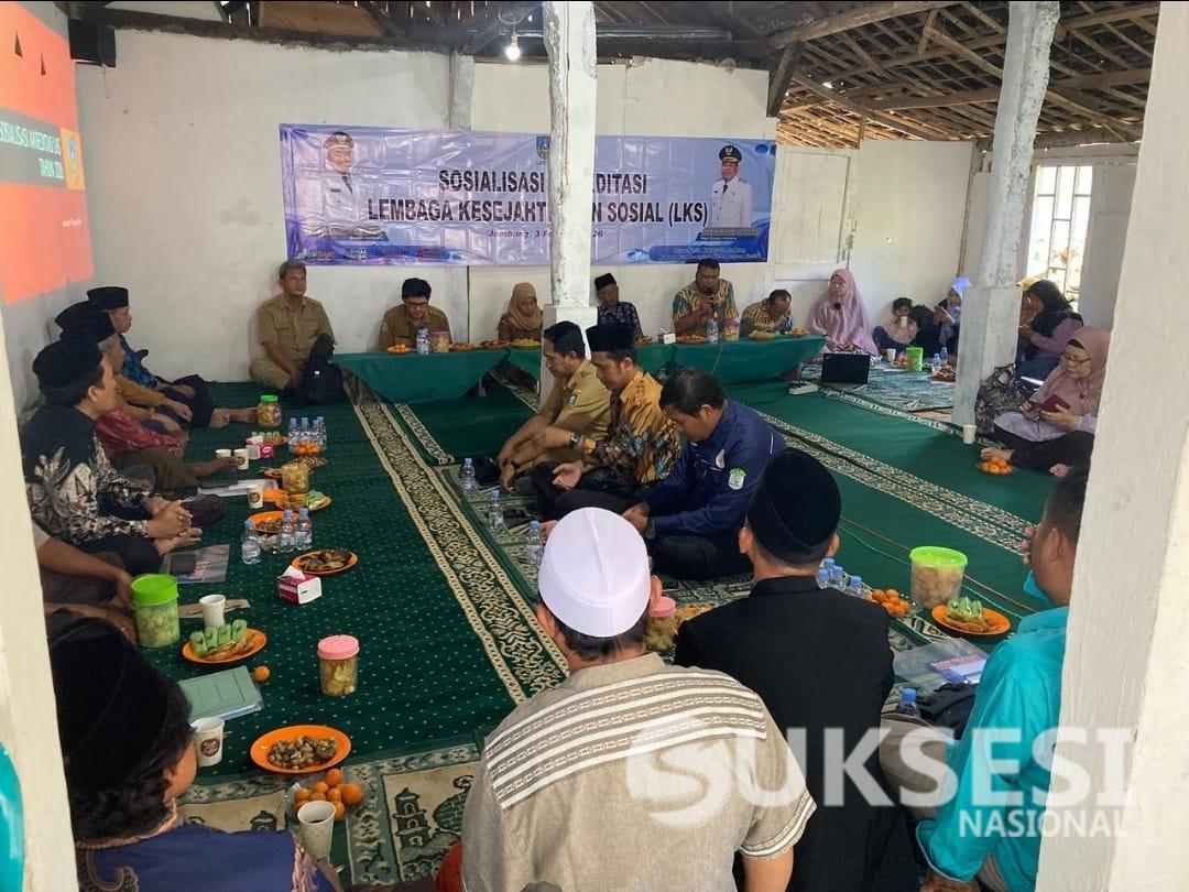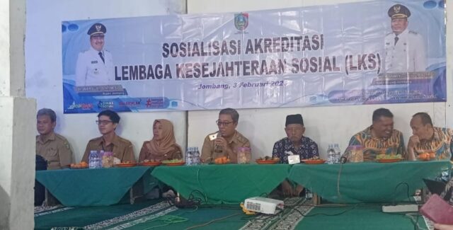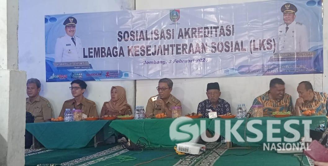 Suksesinasional.com JOMBANG – Upaya peningkatan mutu pelayanan kesejahteraan sosial di Kabupaten Jombang terus diperkuat melalui kegiatan Sosialisasi Akreditasi Lembaga Kesejahteraan Sosial (LKS) yang diselenggarakan Dinas Sosial Kabupaten Jombang pada Selasa, (3/2/ 2026) Bertempat di LKS Darul Hikmah, Desa Galengdowo, Kecamatan Wonosalam, kegiatan yang dimulai sejak pukul 08.30 WIB ini diikuti puluhan pengurus dan operator LKS dari seluruh wilayah Kabupaten Jombang, serta jajaran pejabat struktural dan fungsional Dinas Sosial.