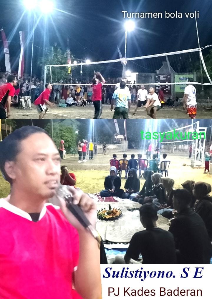 PJ kepala desa Baderan Sulistiyono. S E dalam sambutannya mengatakan ungkapan banyak – banyak terima kasih atas antusias masyarakat baderan yang kompak( rengkuyung ) untuk memeriahkan HUT RI ke 79 tahun