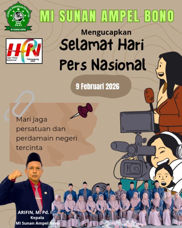 Beranda TulungagungTulungagungMI Sunan Ampel Bono Mengucapkan Selamat Hari Pers Nasional 2026Penulis Redaksi - Senin, 2 Februari 2026, 12:39 WIB
