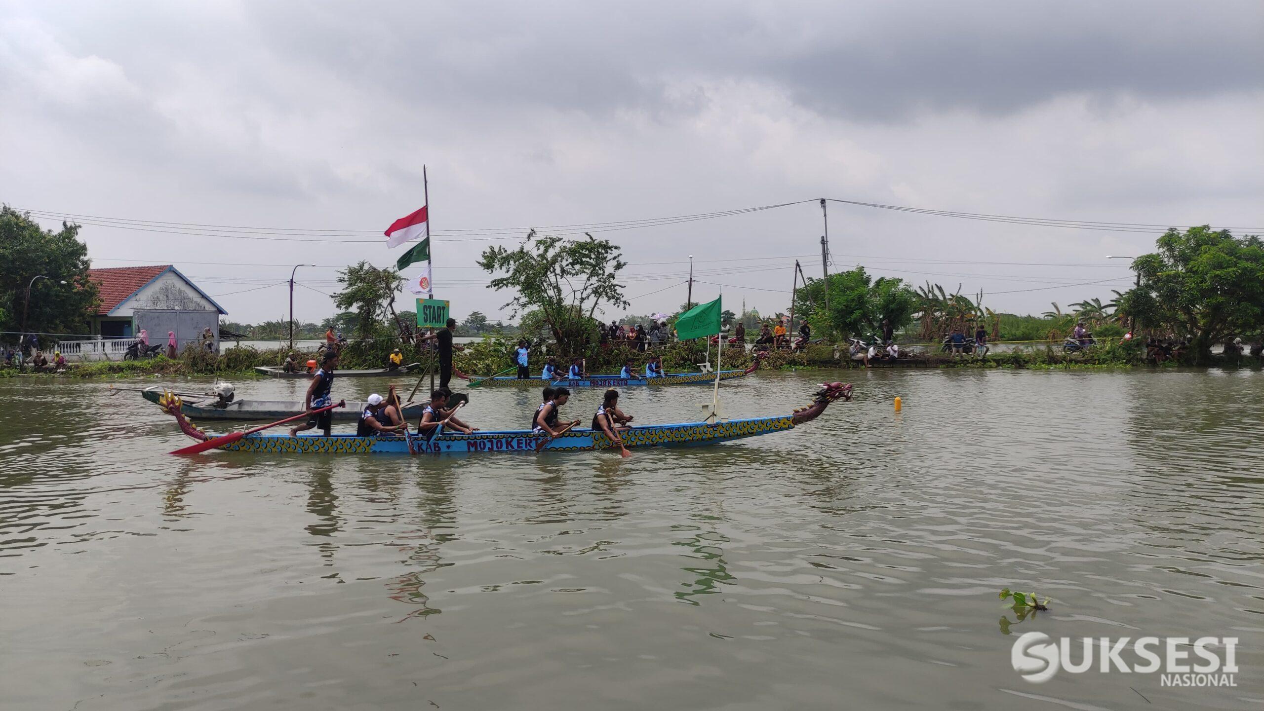 Suksesi Nasional, Lamongan– Memperingati momentum bersejarah Harlah 1 Abad Nahdlatul Ulama (NU), sebanyak 16 tim dayung di Kabupaten Lamongan mengikuti perlombaan Dragon Boat di jalur air Bengawan Jero, Desa Blawi, Kecamatan Karangbinangun, Minggu (8/2/2026). Ajang ini sekaligus menjadi upaya Pemerintah Kabupaten Lamongan dalam mendorong potensi sport tourism di wilayah tersebut.