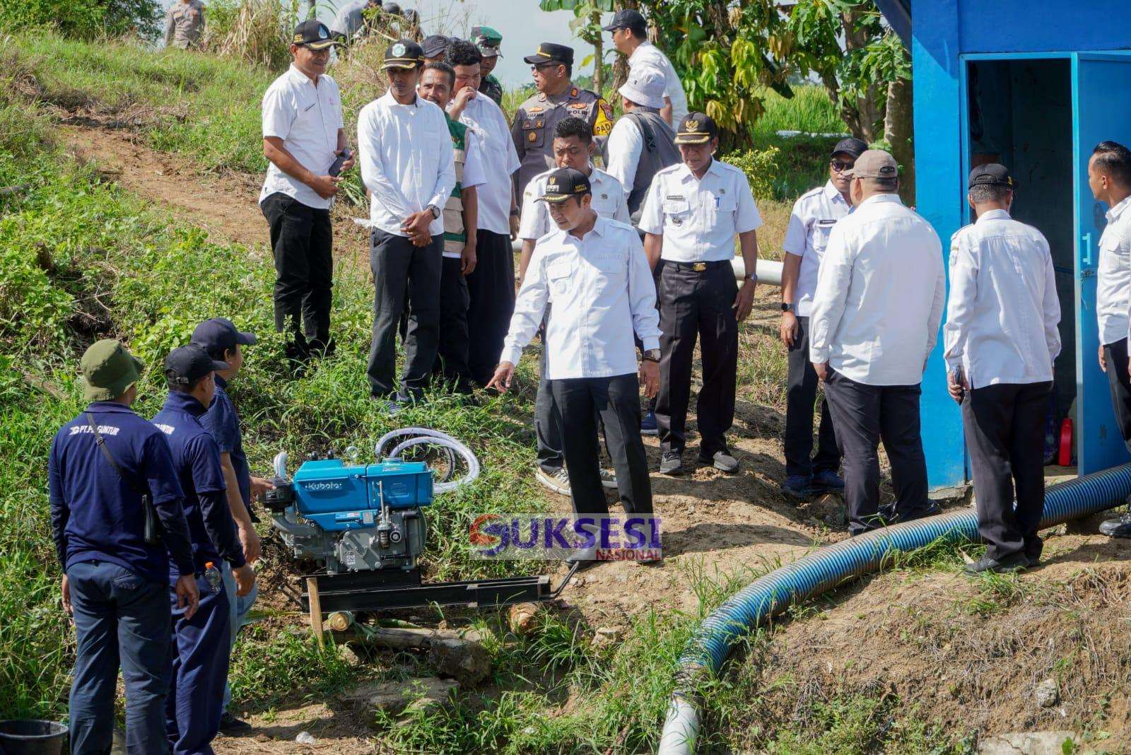 Lamongan, Suksesi Nasional-Dirjen Prasarana dan Sarana Pertanian Kementerian Pertanian Andi Nur Alamsyah didampingi Bupati Lamongan Yuhronur Efendi pada Rabu (29/4), melakukan monitoring pompanisasi di Waduk Delikguno Desa Pengumbulanadi Kecamatan Tikung. Meninjau penempatan, penyerahan dan uji coba alsintan (alat dan mesin pertanian) di Lamongan berjalan lancar, beliau optimis Petani Lamongan akan dapat tetap menanam dan terus berproduksi dengan adanya mitigasi lebih awal dalam menghadapi ancaman El Nino.