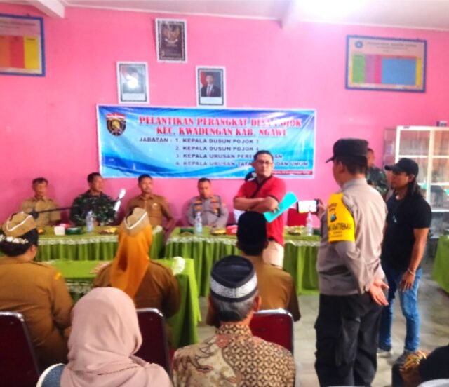Suksesi Nasional.com Ngawi – Suasana ricuh terjadi saat pelantikan perangkat desa pojok , Kecamatan Kwadungan, kabupaten Ngawi yang di gelar di ruang rapat kantor desa ,Selasa 16 September 2025