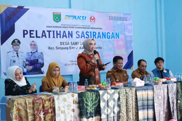 Suksesi Nasional.com Tanbu BATULICIN – Ketua Dewan Kerajinan Nasional Daerah (Dekranasda) Kabupaten Tanah Bumbu, Andi Irmayani Rudi Latif membuka pelatihan sasirangan, Senin (15/9/2025) di Aula Kantor Desa Sarigadung, Kecamatan Simpang Empat.