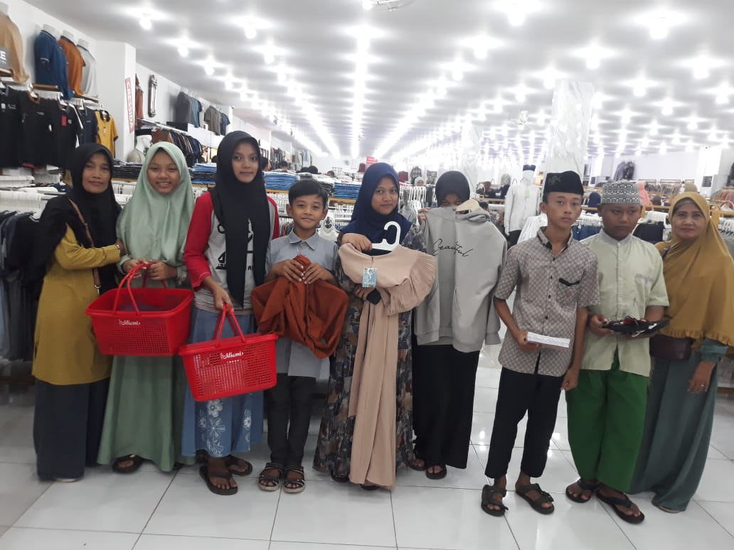 Anak-anak yatim-piatu di desa Sugehwaras diajak berbelanja baju lebaran di Toko sumbermurah Maospati, Mereka didampingi kepala Desa Wignyo Martono Sugehwaras dan panitia Ramadhan Desa Sugehwaras