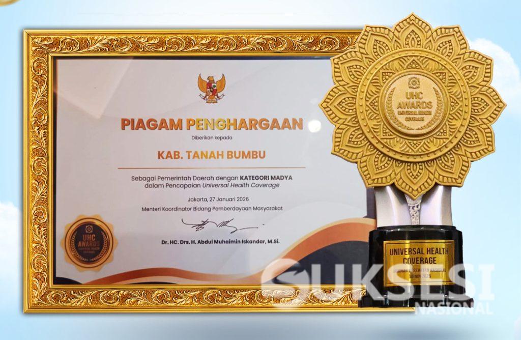 Suksesi Nasional.com Tanah bumbuBATULICIN – Pemerintah Kabupaten Tanah Bumbu menorehkan prestasi tingkat nasional dengan meraih Universal Health Coverage (UHC) Award 2026 kategori Madya. Penghargaan tersebut diterima Bupati Andi Rudi Latif melalui Sekretaris Daerah (Sekda) Yulian Herawati dalam acara penganugerahan UHC Award 2026. Acara digelar di Jakarta, Selasa (27/1/2026).