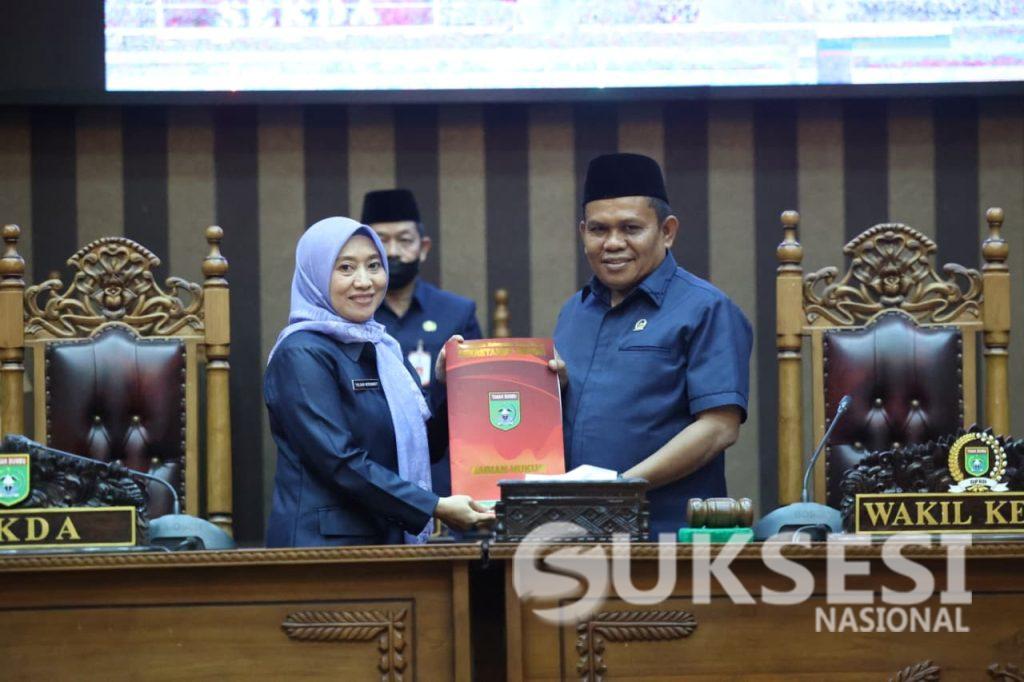 Raperda disampaikan dalam Rapat Paripurna DPRD Kabupaten Tanah Bumbu di Gedung DPRD Tanah Bumbu, Senin (8/9/2025).