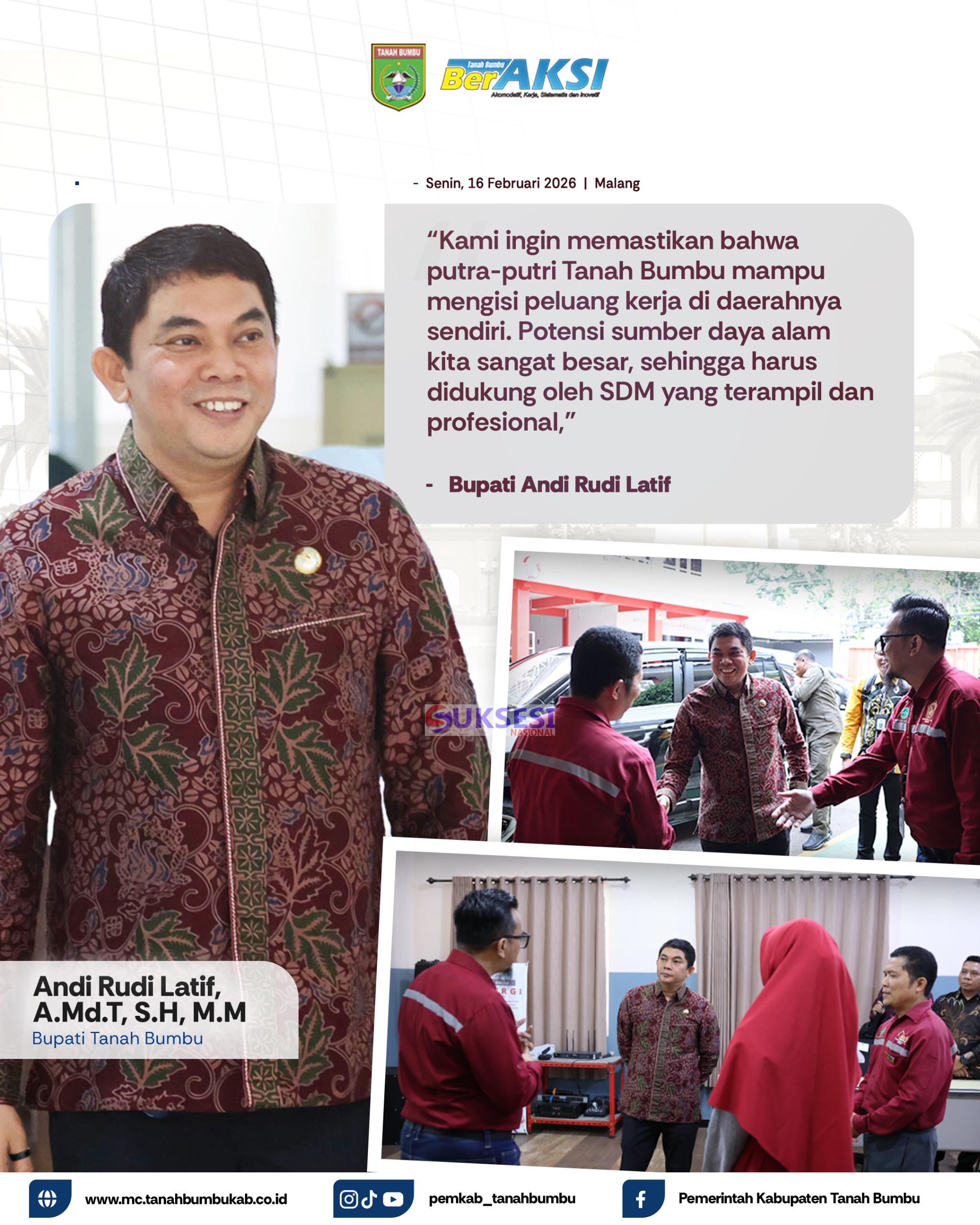 “Kami ingin memastikan bahwa putra-putri Tanah Bumbu mampu mengisi peluang kerja di daerahnya sendiri. Potensi sumber daya alam kita sangat besar, sehingga harus didukung oleh SDM yang terampil dan profesional,” ujar Andi Rudi Latif.