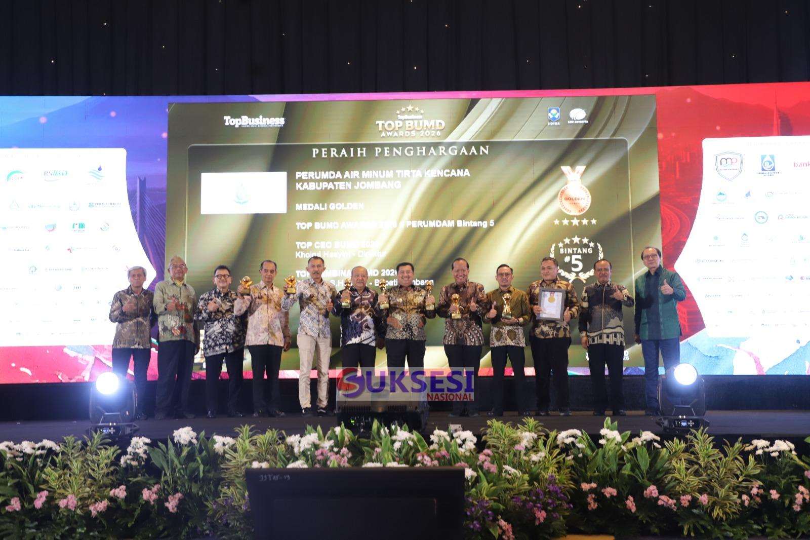 Suksesinasional.com Jombang – Dominasi prestasi dalam ajang TOP BUMD Awards 2026 tahun ini kembali menegaskan kiprah impresif Perumdam Tirta Kencana Jombang sebagai salah satu BUMD unggulan di tingkat nasional. Perusahaan milik daerah Kabupaten Jombang tersebut sukses meraih Golden Award—penghargaan prestisius yang diberikan kepada BUMD yang mampu mempertahankan predikat Bintang 5 selama empat tahun berturut-turut. Penghargaan ini diterima pada Senin, 13 April 2026, dalam seremoni bergengsi yang digelar di Hotel Raffles Jakarta.