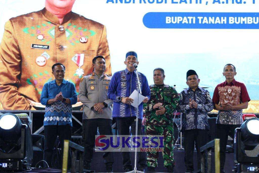Suksesi Nasional.com Tanah bumbu BATULICIN – Bupati Tanah Bumbu Andi Rudi Latif membuka Pesona Budaya Mappanre Ritasi’e di kawasan Pantai Pagatan, Kusan Hilir, Kabupaten Tanah Bumbu, Minggu (12/4/2026). Acara pembukaan dimeriahkan dengan aksi panggung Slank dan Siti Badriah.