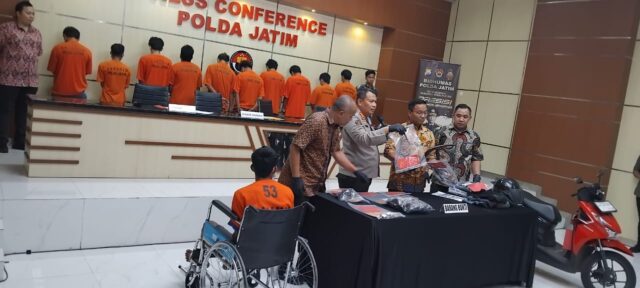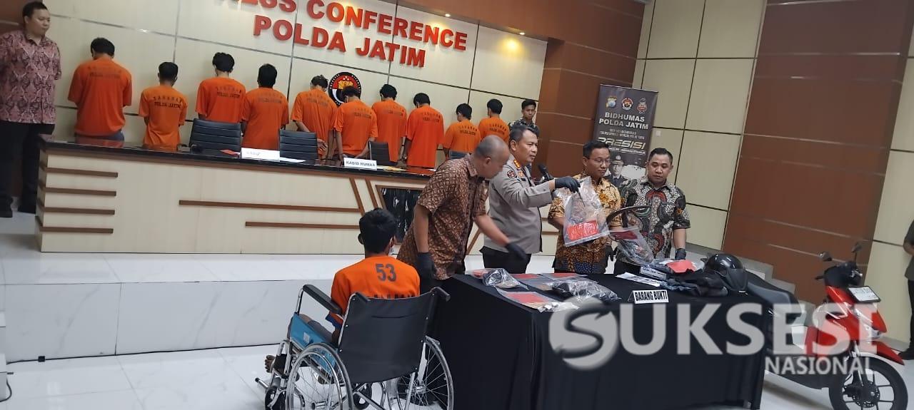Para Tersanga dan Barang Bukti di Mapolda Jatimn(FOTO Dok = Suksesi Nasional.com // M.Rusdi)