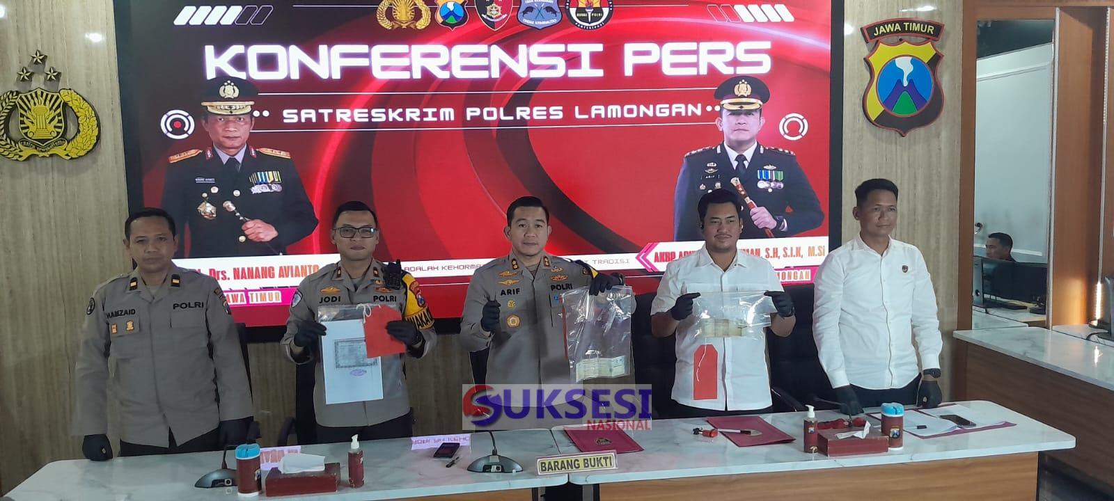 Dalam konferensi pers tersebut Kapolres Lamongan didampingi Wakapolres Lamongan Kompol Jodi Indrawan, S.I.K., Kasat Reskrim Polres Lamongan AKP Rizky Akbar Kurniadi, S.Tr.K., S.I.K., M.Si., Kanit 1 Pidum Sat Reskrim Polres Lamongan IPTU Sunandar, S.H., M.H., serta Kasihumas Polres Lamongan Ipda M. Hamzaid, S.Pd.