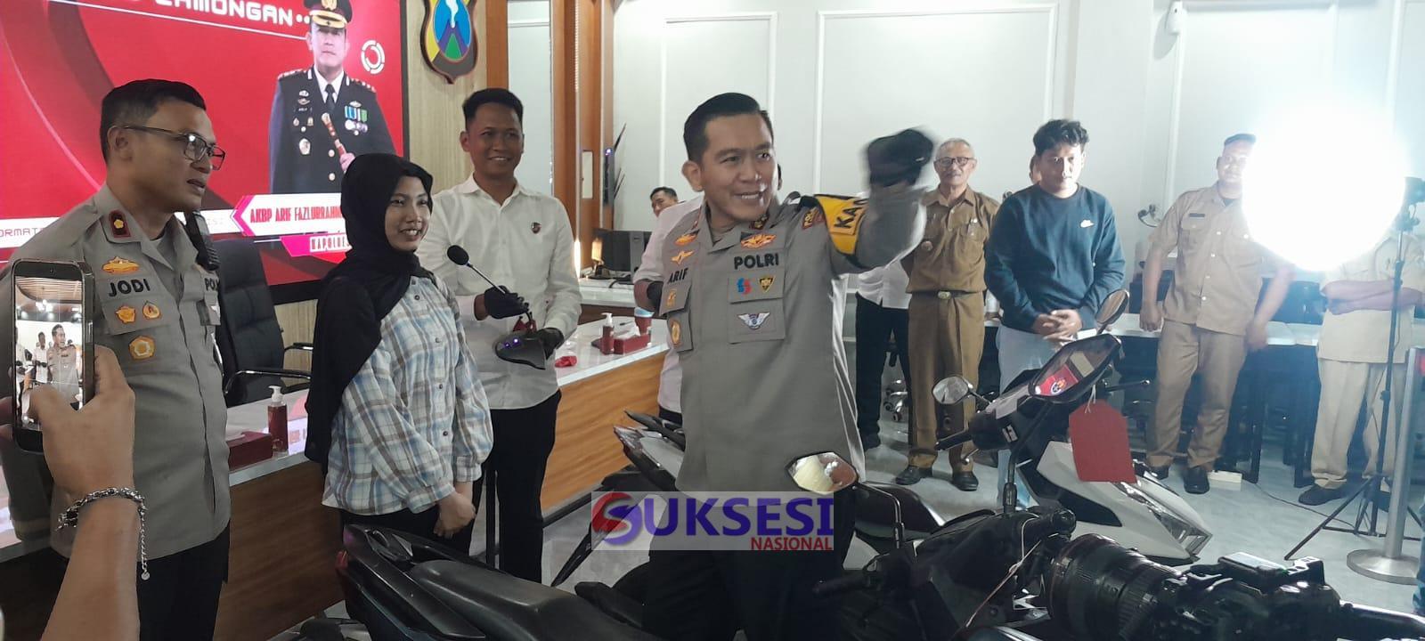 Lamongan, Suksesi Nasional- Polres Lamongan menggelar konferensi pers pengungkapan kasus tindak pidana pencurian dengan pemberatan (curanmor R-2) sebagaimana dimaksud dalam Pasal 477 KUHP yang terjadi di wilayah Kabupaten Lamongan, Selasa (16/03/2026).