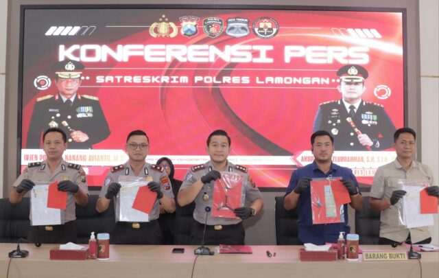 Dalam konferensi pers tersebut, Kapolres Lamongan memaparkan kronologi kejadian beserta lokasi kejadian perkara.