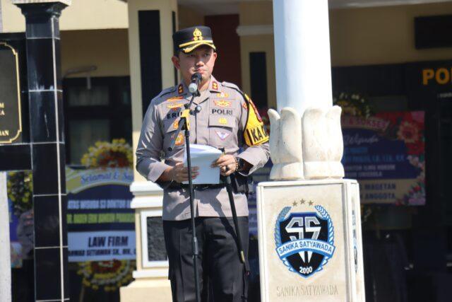 paparannya Kapolres Magetan menyampaikan bahwa apel gelar pasukan ini merupakan bagian dari kesiapan pelaksanaan Operasi Ketupat Semeru 2026 yang telah melalui berbagai tahapan perencanaan serta evaluasi dari pelaksanaan operasi sebelumnya.