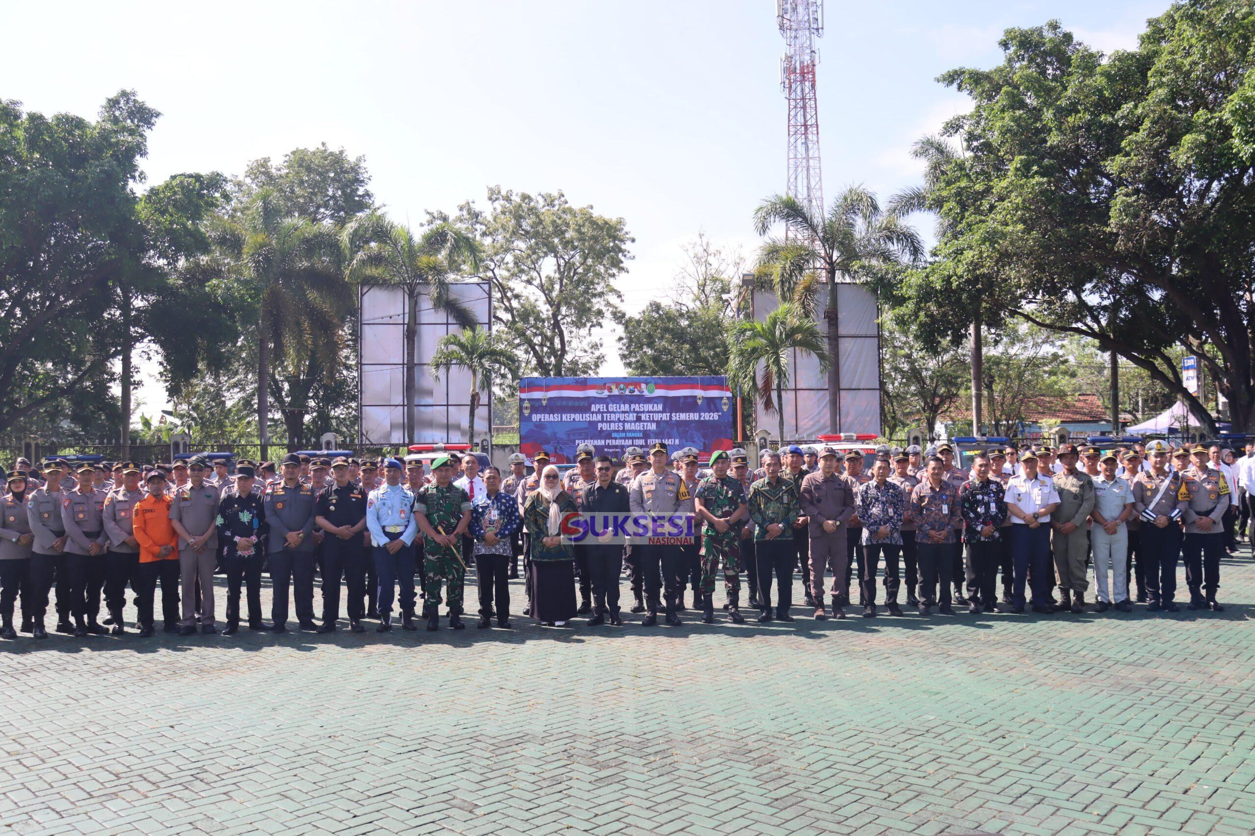 Magetan ,Suksesi Nasional com – Tingkatkan kenyamanan dan keselamatan juga memastikan kesiapan pengamanan arus mudik dan perayaan Hari Raya Idulfitri 1447 H, Polres Magetan melaksanakan Apel Gelar Pasukan Operasi Ketupat Semeru 2026 dilaksanakan di halaman apel Polres Magetan (12/3/2026).