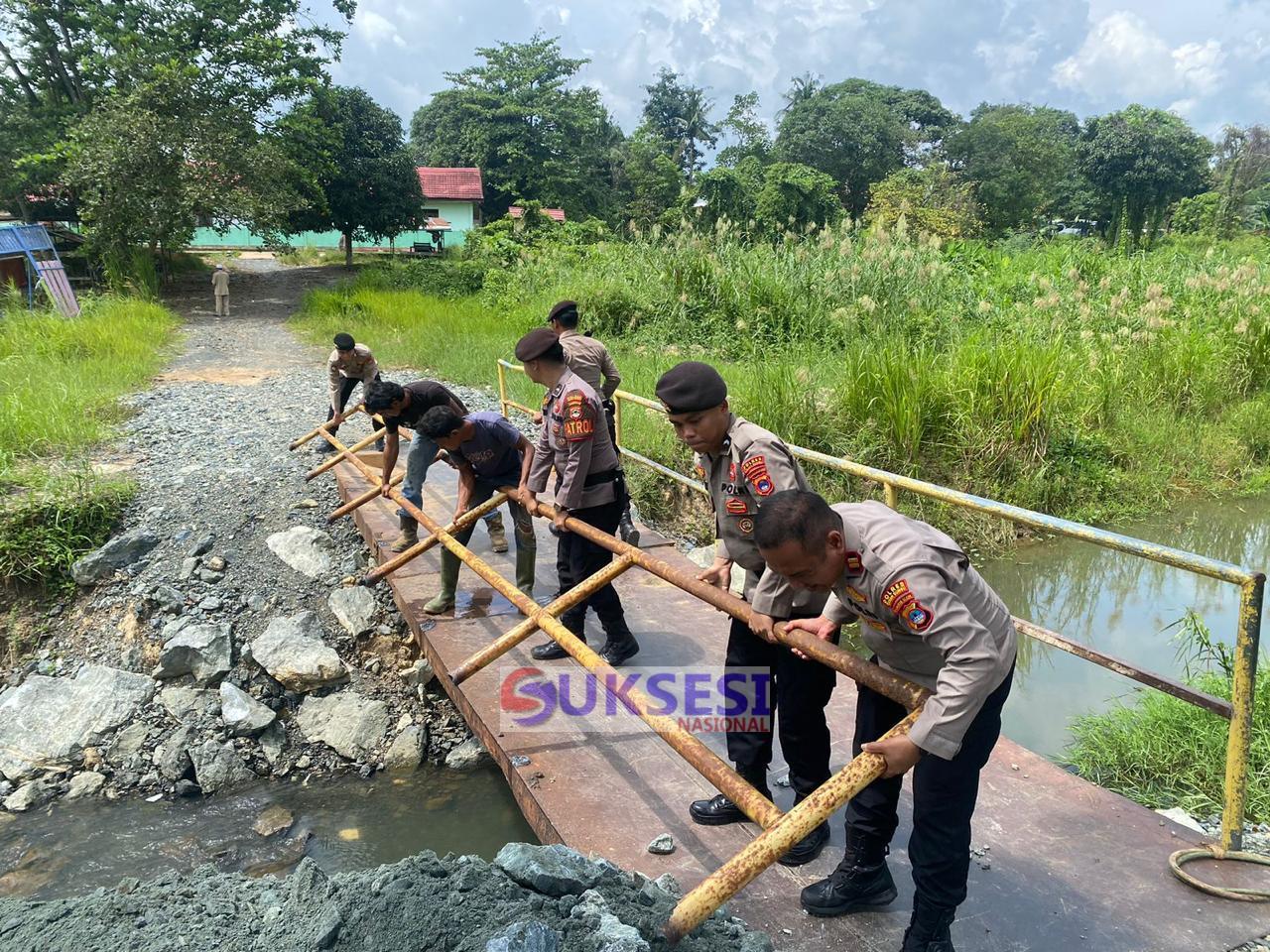 Polres Tanah Bumbu Dukung Pembangunan Jembatan di Kelurahan Tungkaran Pangeran Kecamatan Simpang Empat