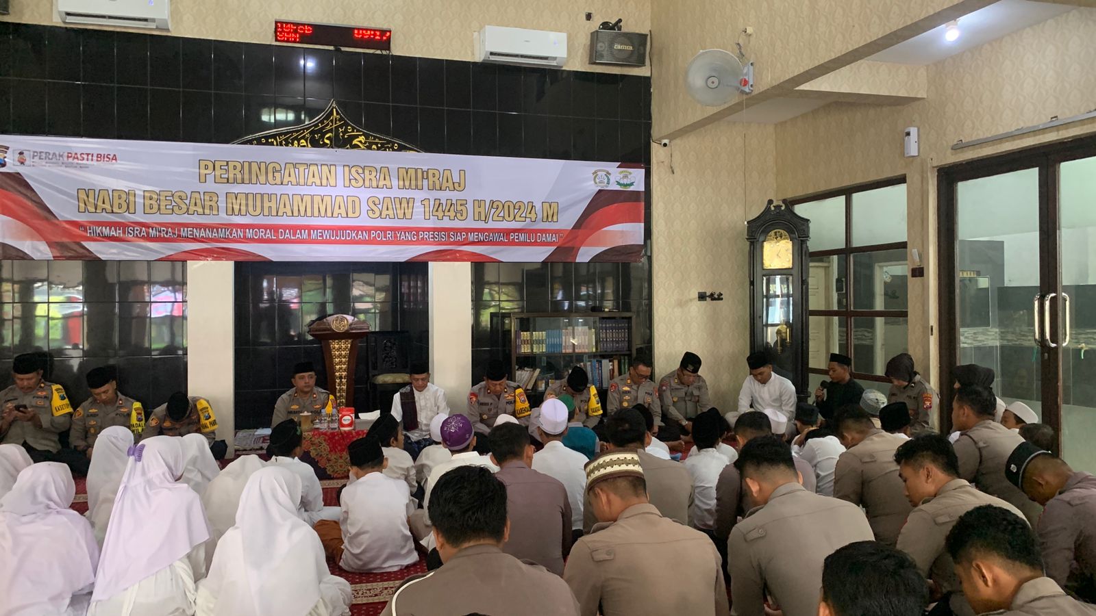 Kegiatan yang mengusung tema “Hikmah Isra Mikraj menanamkan moral dalam mewujudkan Polri Presisi siap mengawal pemilu damai dan terselenggaranya pemilu yang aman di Surabaya, Khususnya di wilayah hukum Polres Pelabuhan Tanjung Perak”.