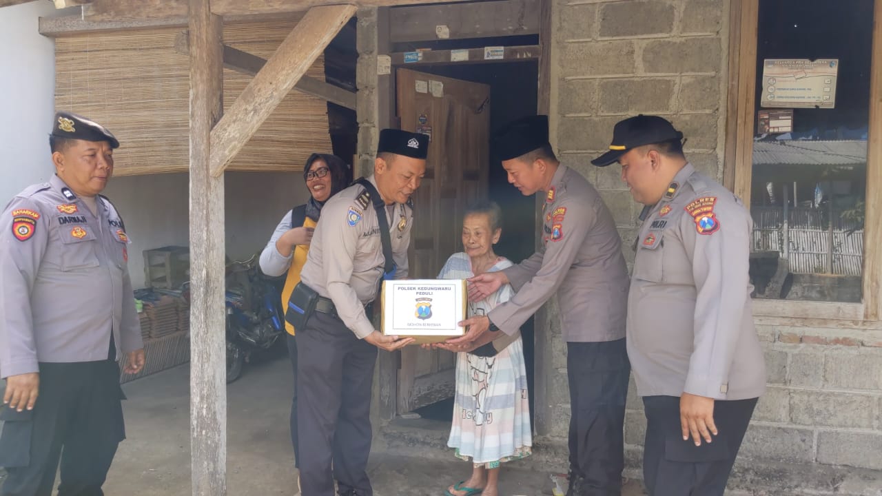 “Kali ini kami mengunjungi ibu Wiji (86) yang sudah sepuh (lansia) dan hidup sendiri, jadi kita beri bantuan sembako sambil melihat kondisi kesehatan beliau,”kata AKP Sumaji.